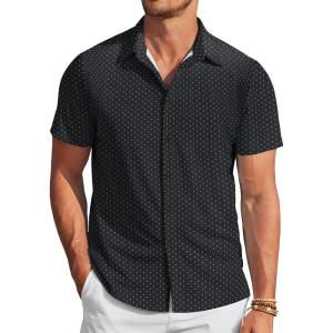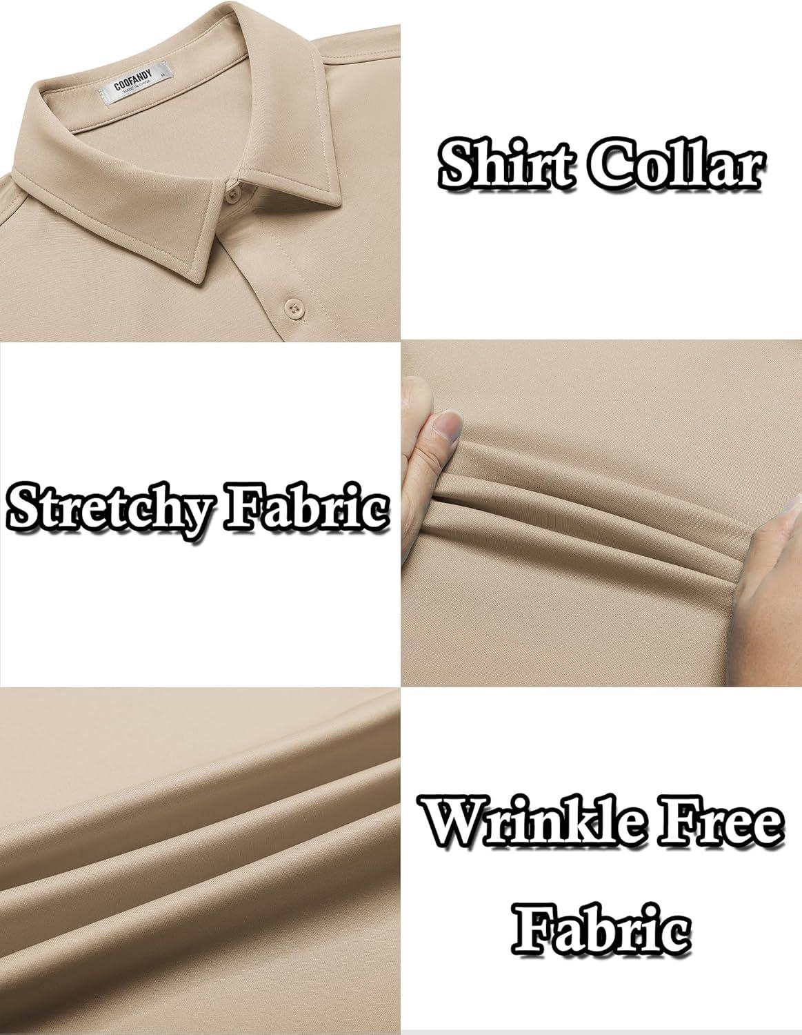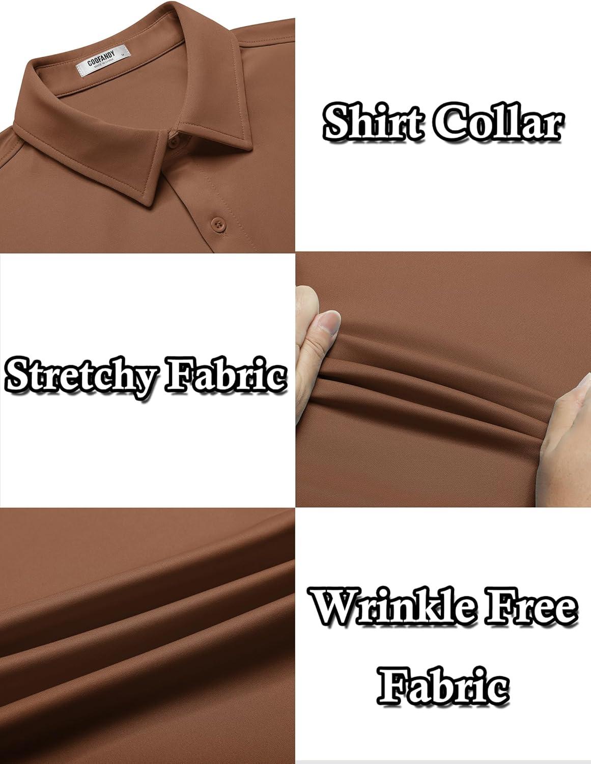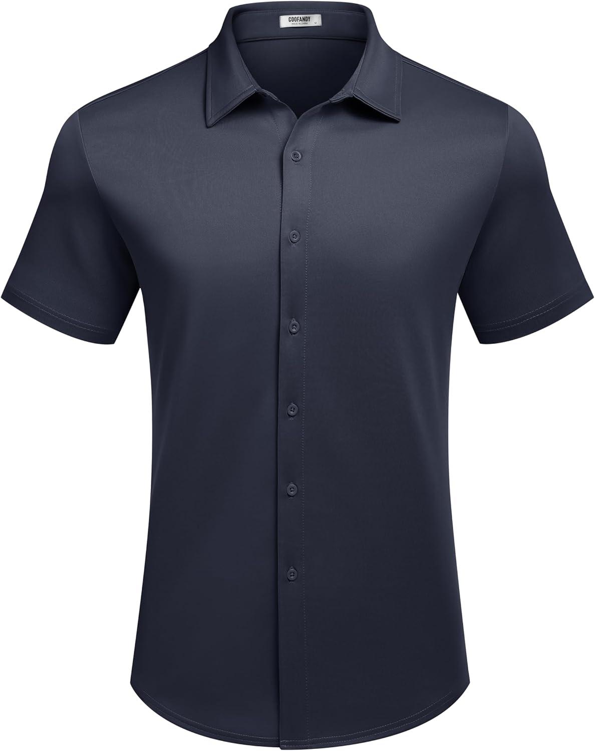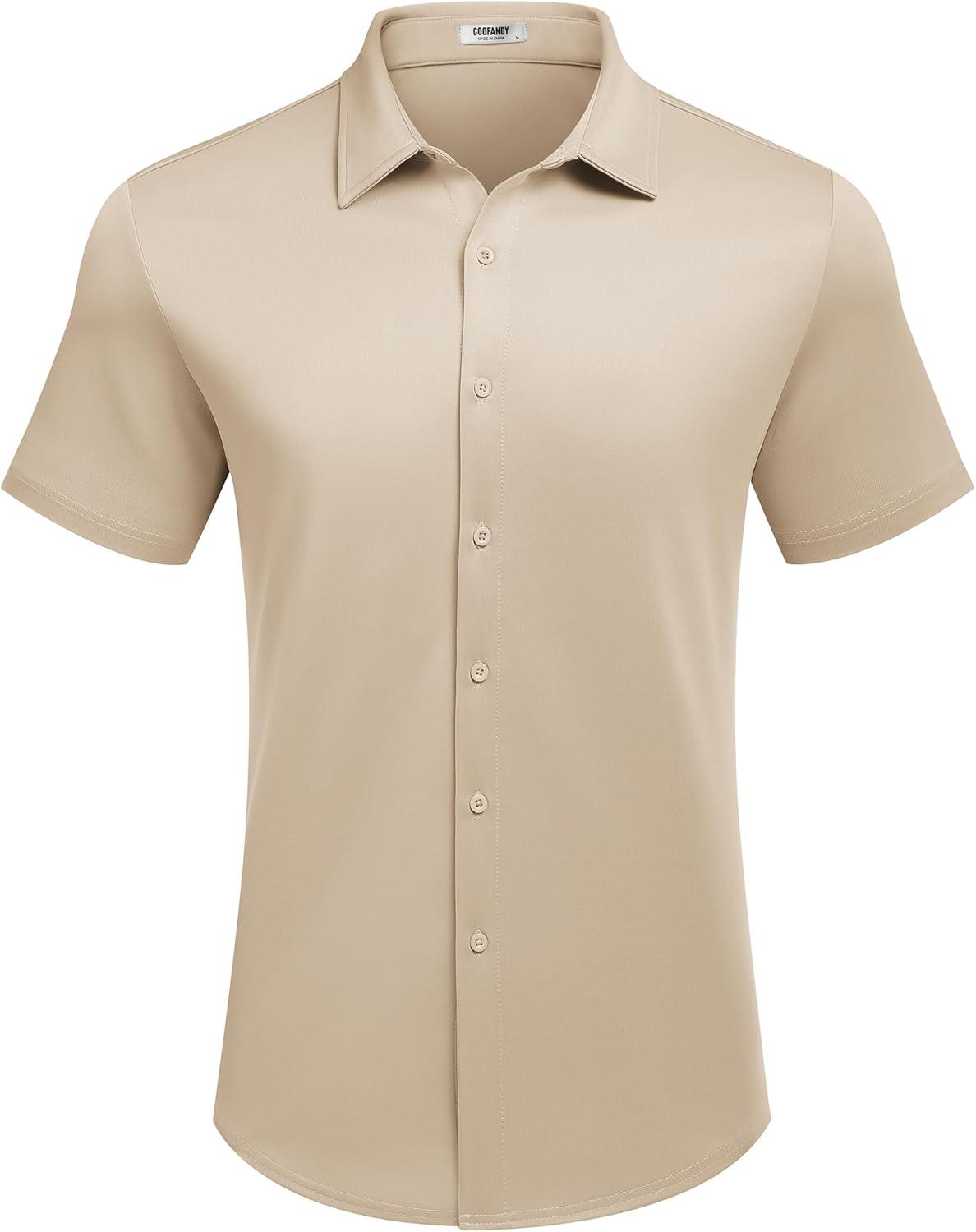 • COOFANDY Mens Casual Wrinkle Free Shirts Short Sleeve Button Down Summer Stretch Dress Shirt(Khaki)