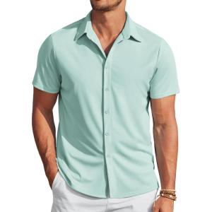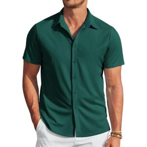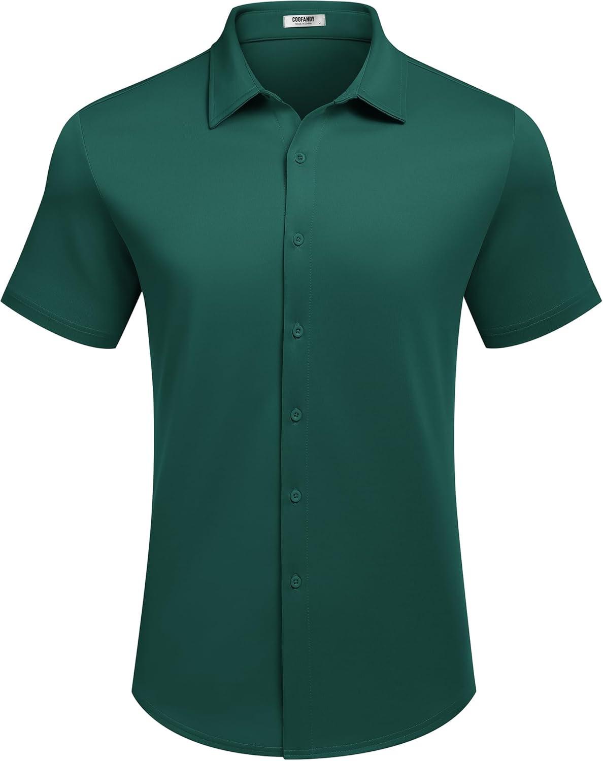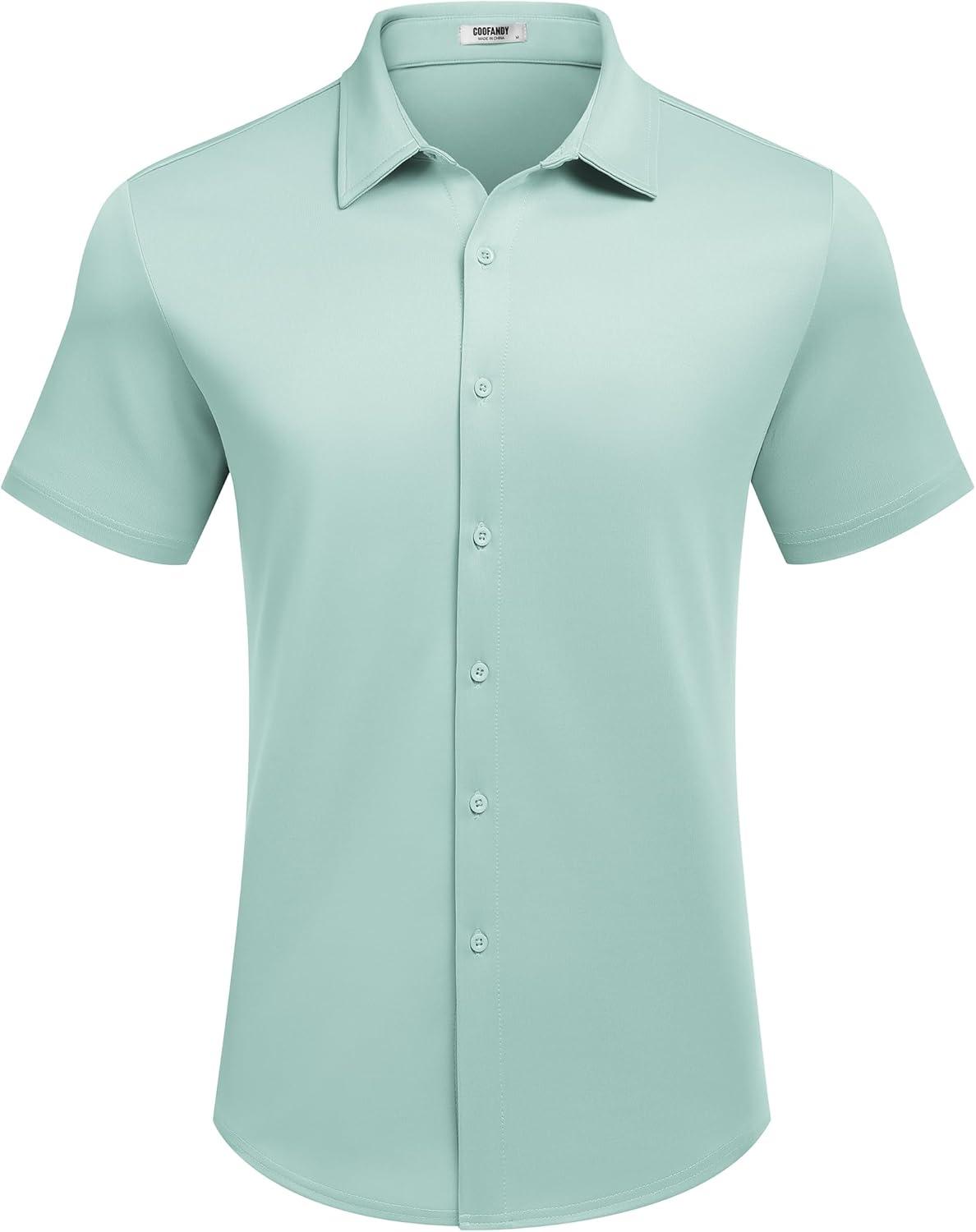 • COOFANDY Mens Casual Wrinkle Free Shirts Short Sleeve Button Down Summer Stretch Dress Shirt(Lake Green)