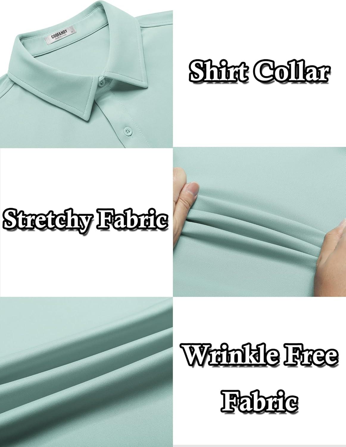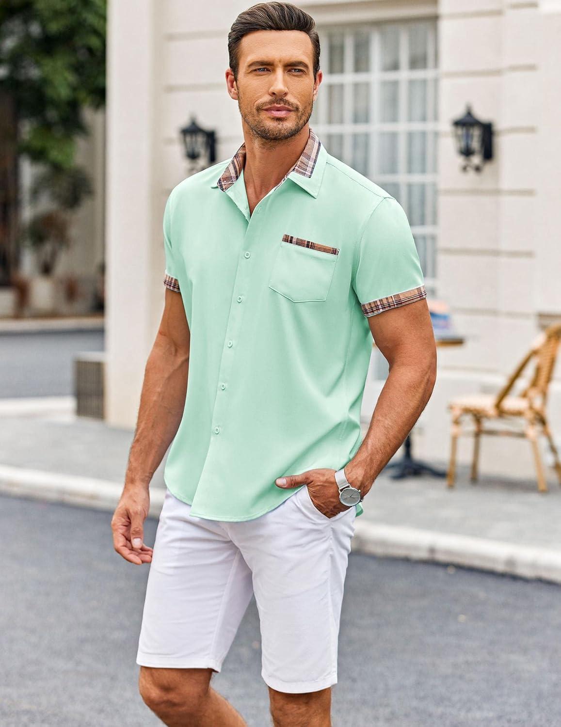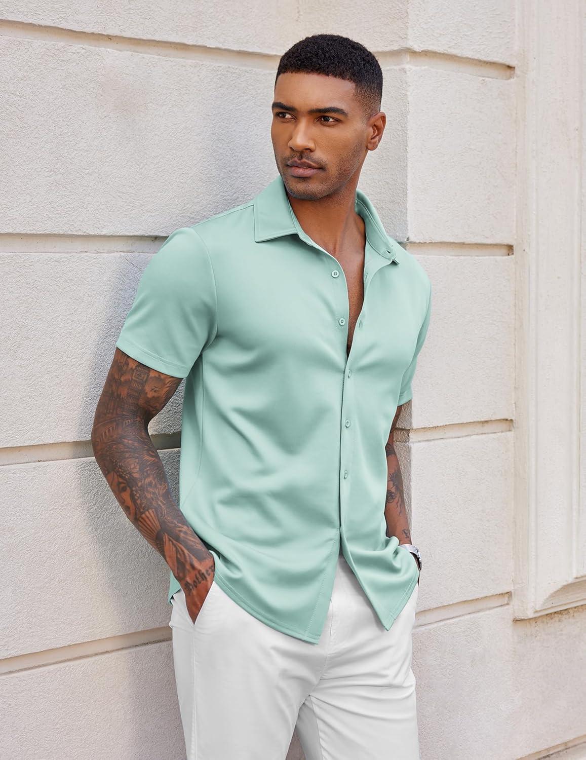• COOFANDY Mens Casual Wrinkle Free Shirts Short Sleeve Button Down Summer Stretch Dress Shirt(Light Green)