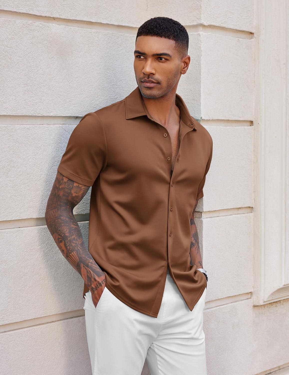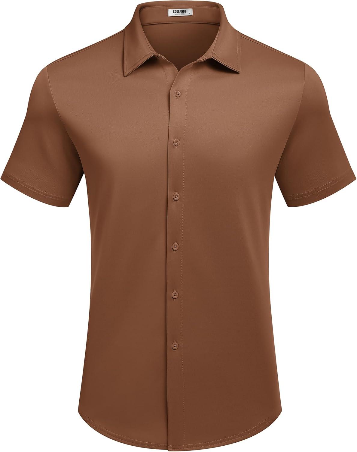 • COOFANDY Mens Casual Wrinkle Free Shirts Short Sleeve Button Down Summer Stretch Dress Shirt(Light Brown)