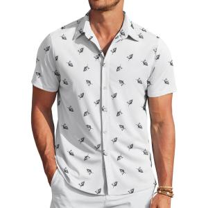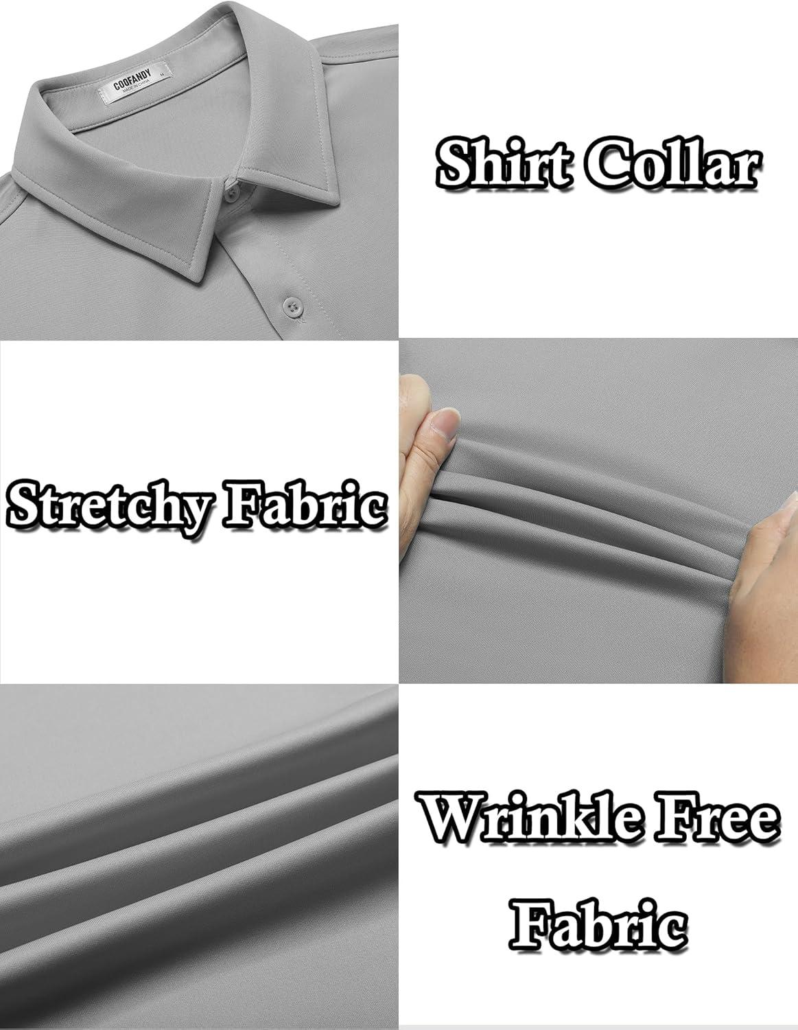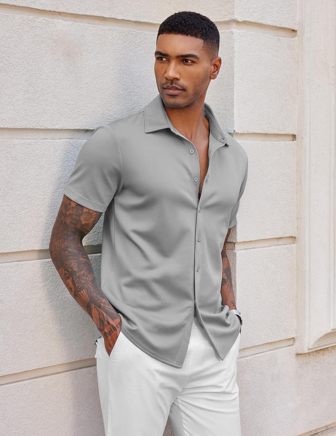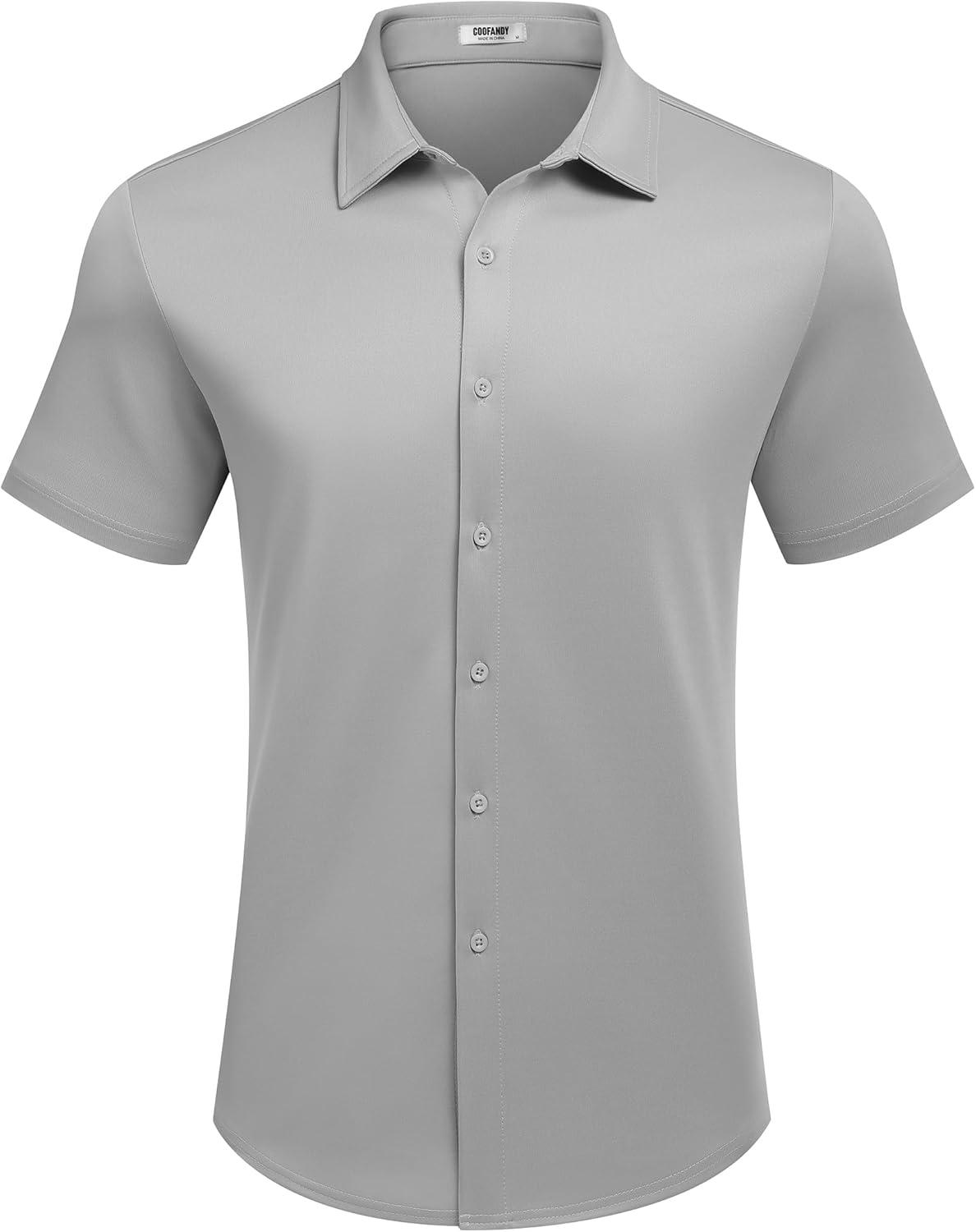 • COOFANDY Mens Casual Wrinkle Free Shirts Short Sleeve Button Down Summer Stretch Dress Shirt(Light Gray)