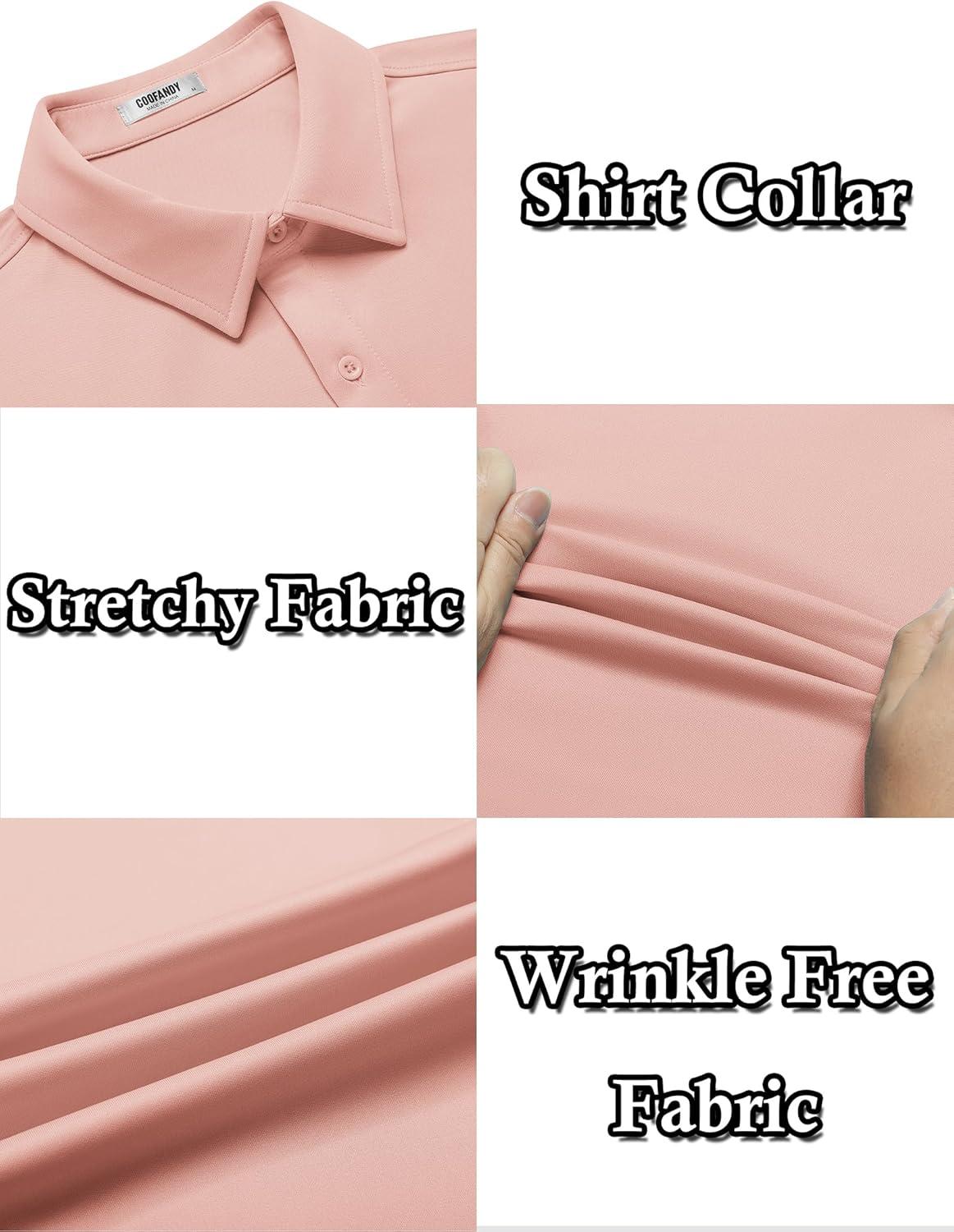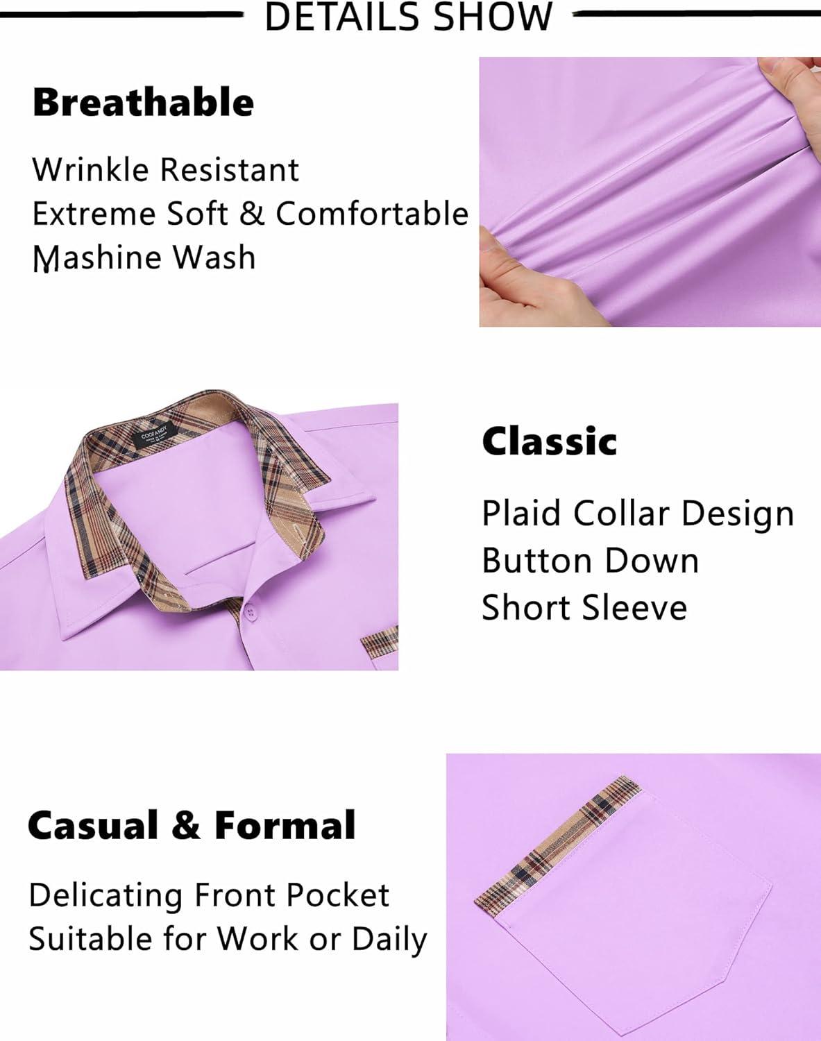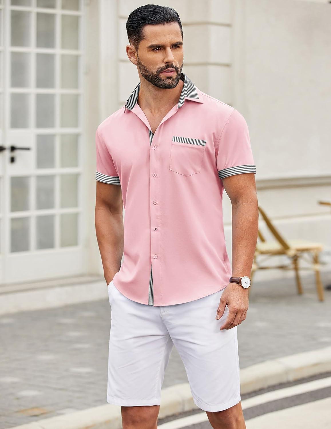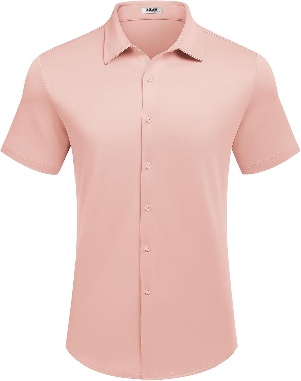 COOFANDY Mens Casual Wrinkle Free Shirts Short Sleeve Button Down Summer Stretch Dress Shirt(Light Pink)