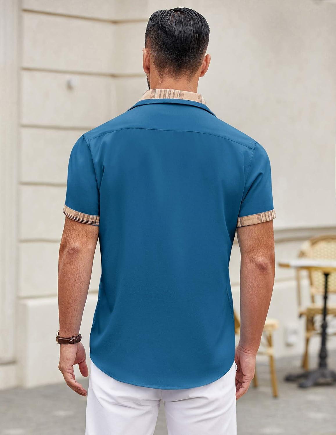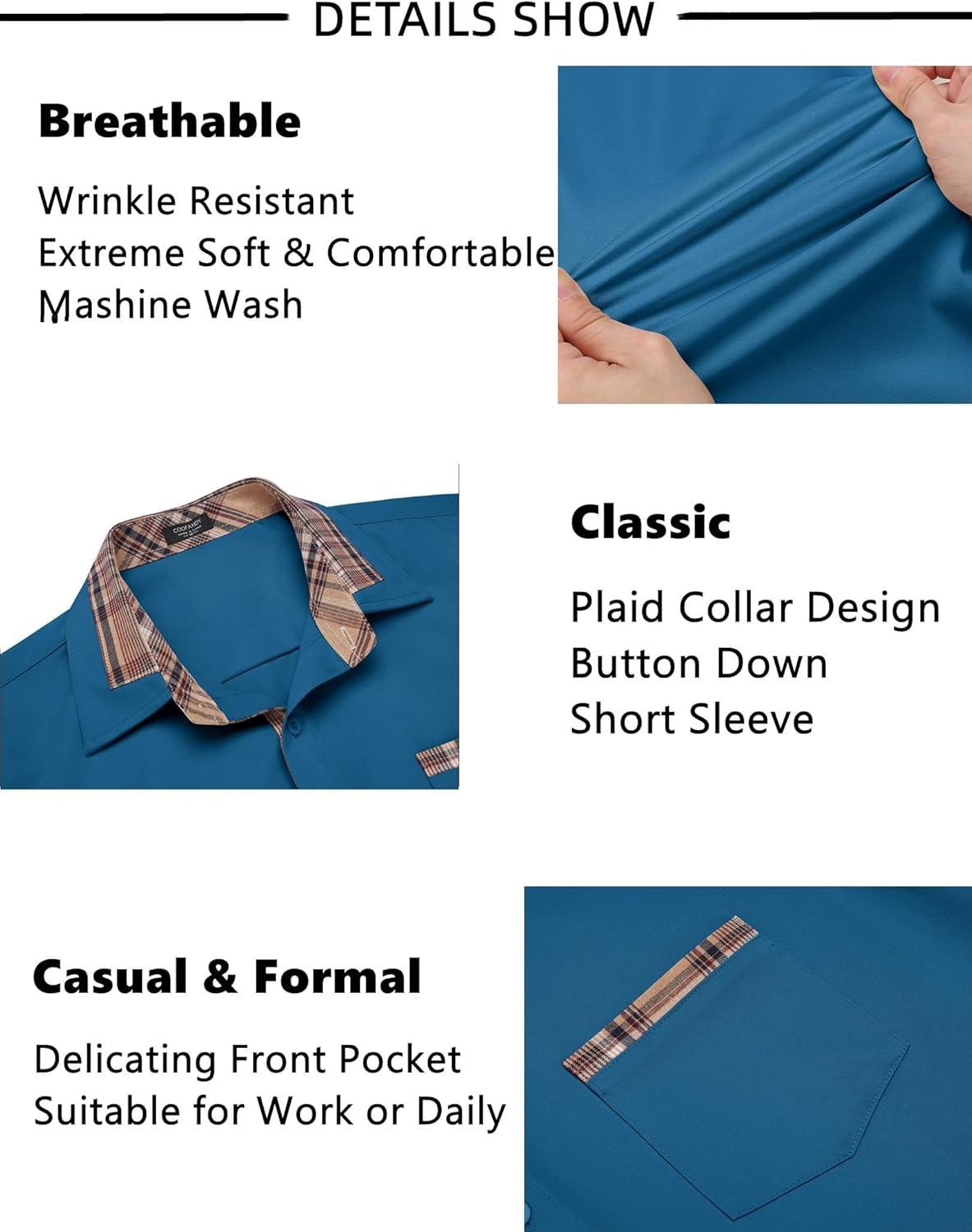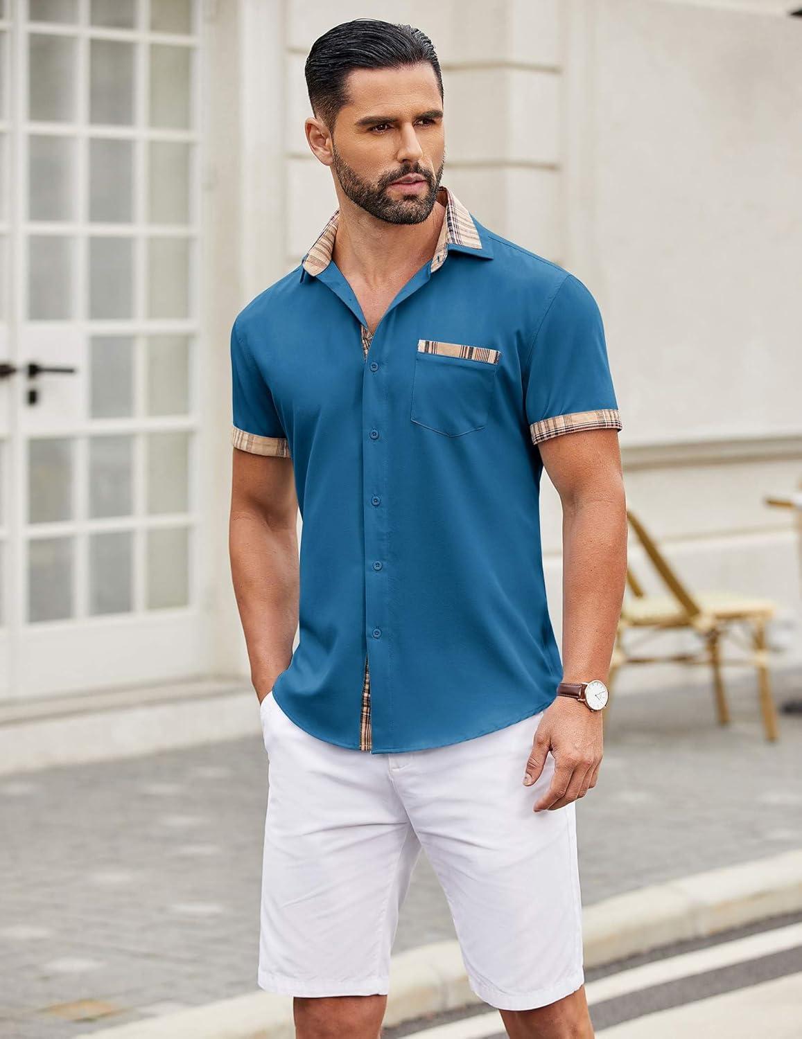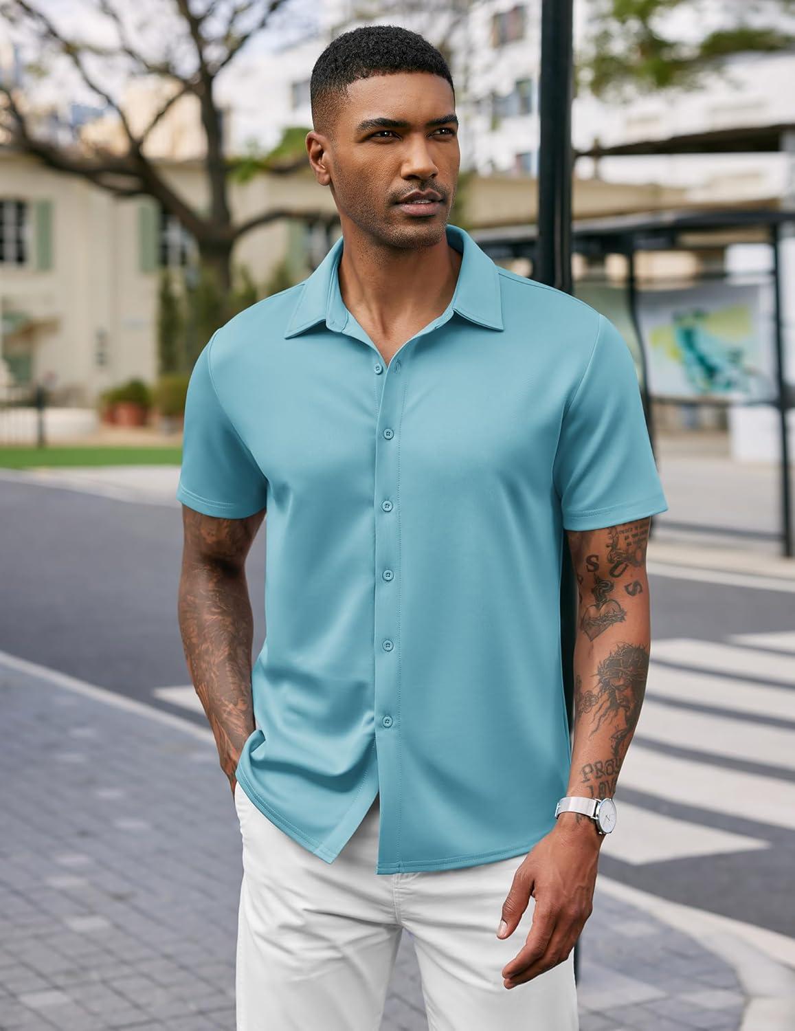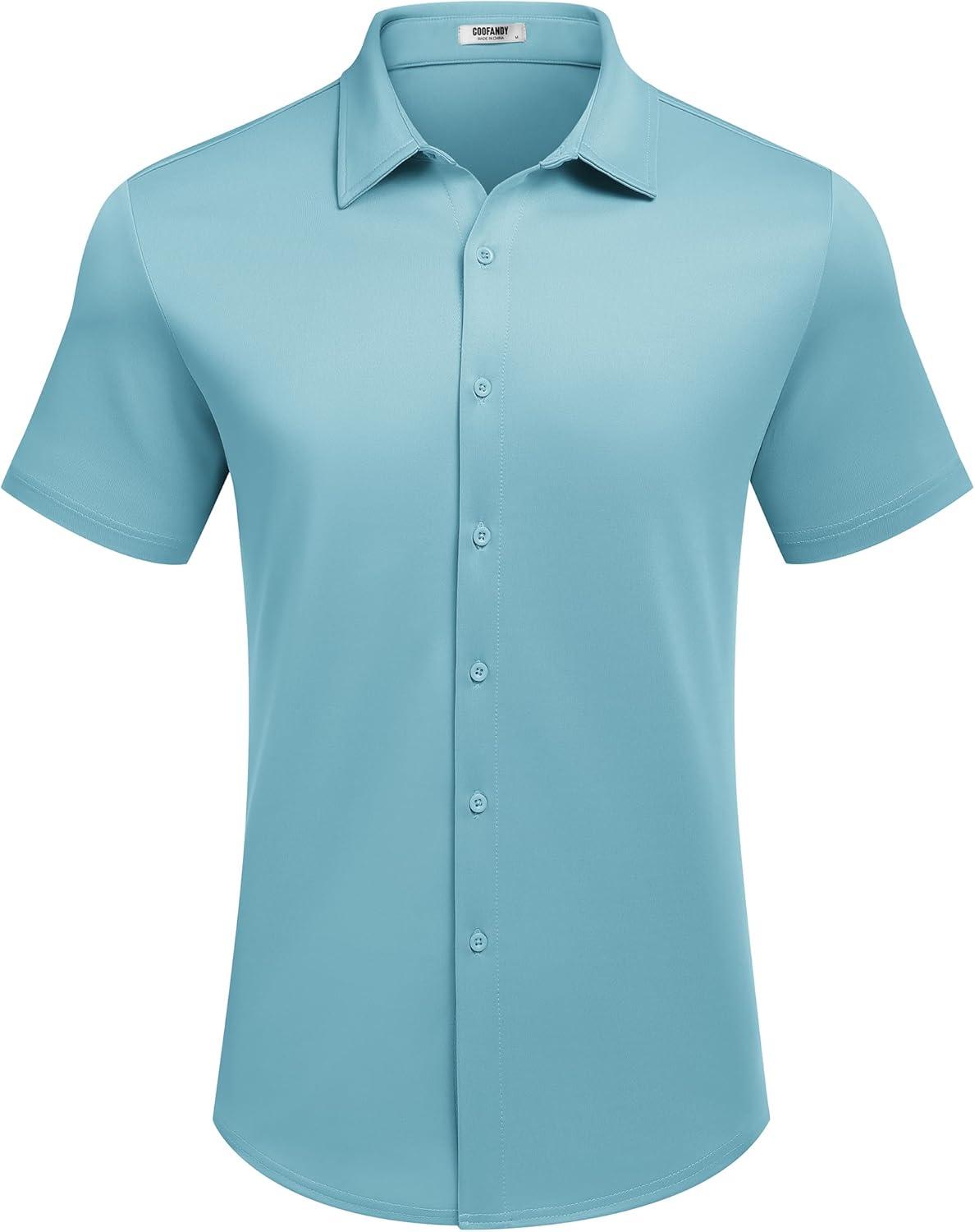 • COOFANDY Mens Casual Wrinkle Free Shirts Short Sleeve Button Down Summer Stretch Dress Shirt(Light Blue)
