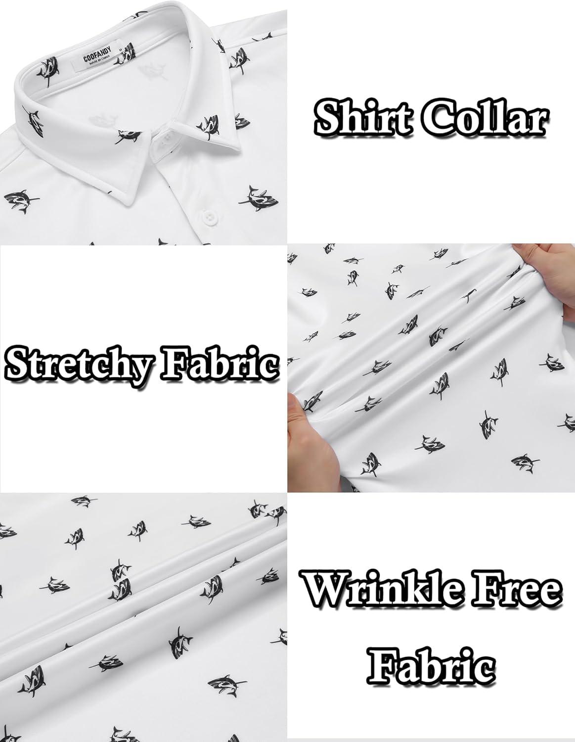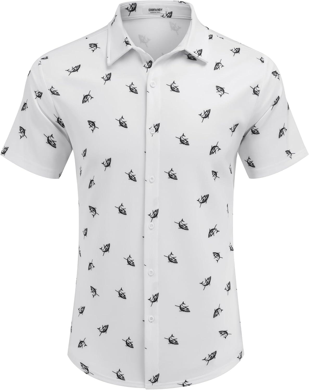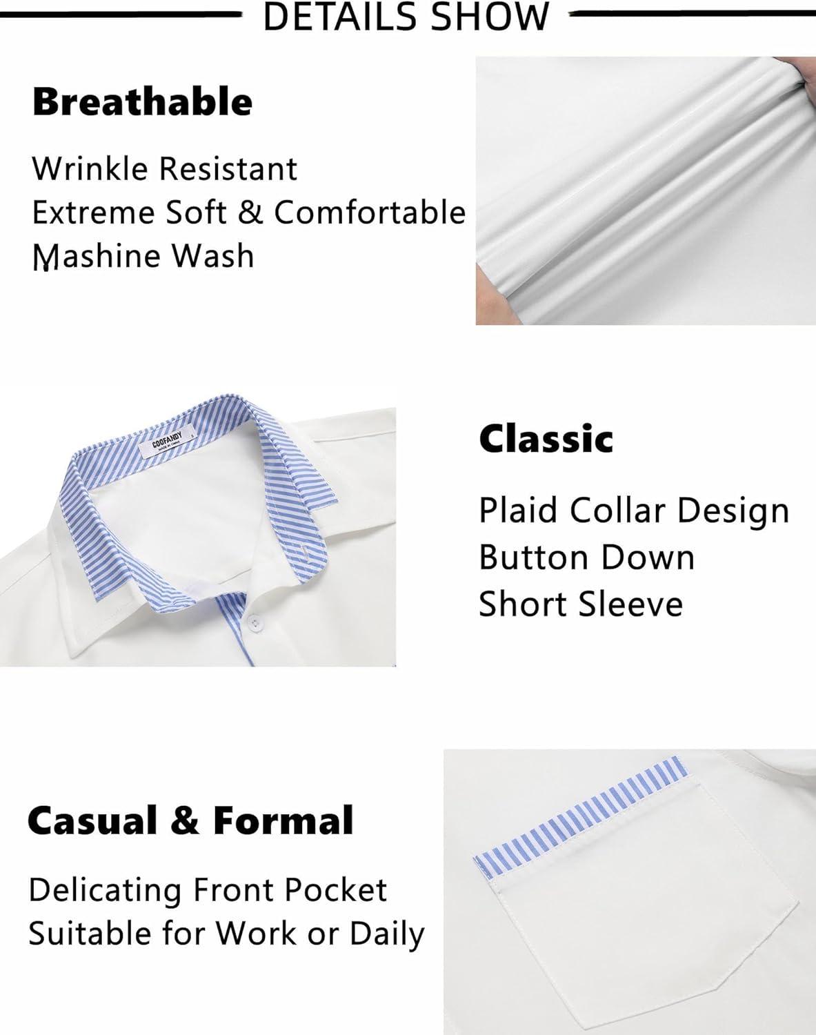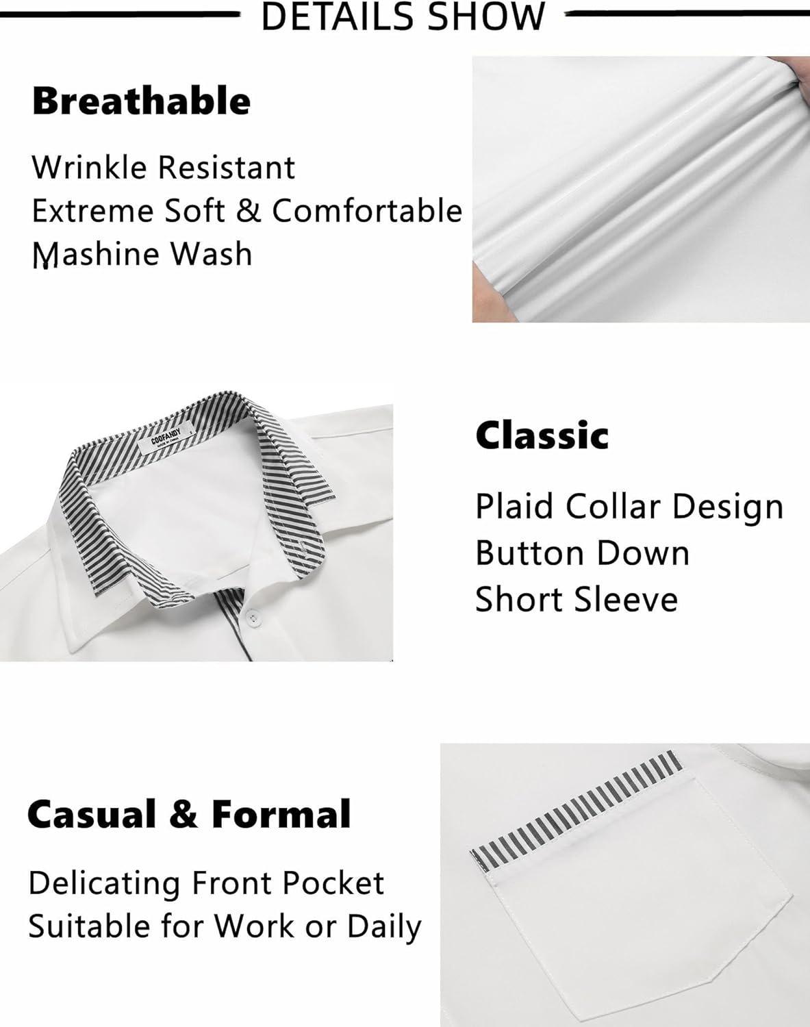• COOFANDY Mens Casual Wrinkle Free Shirts Short Sleeve Button Down Summer Stretch Dress Shirt(Khaki&white)