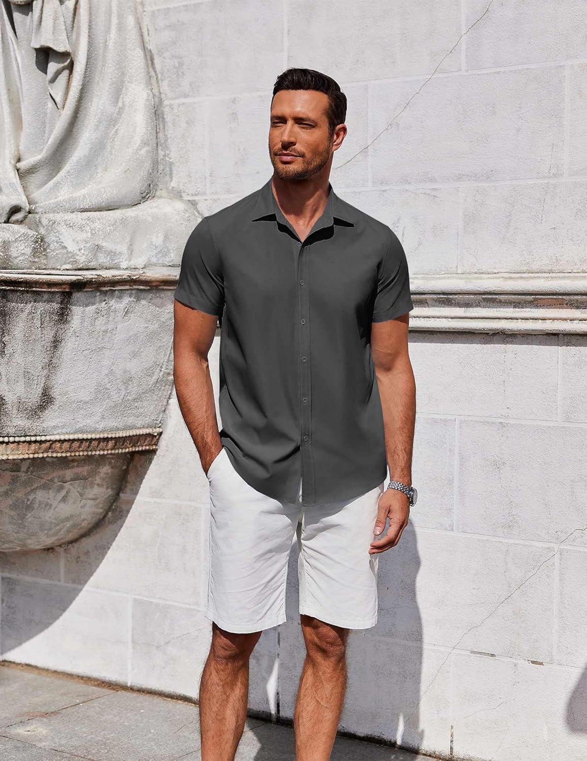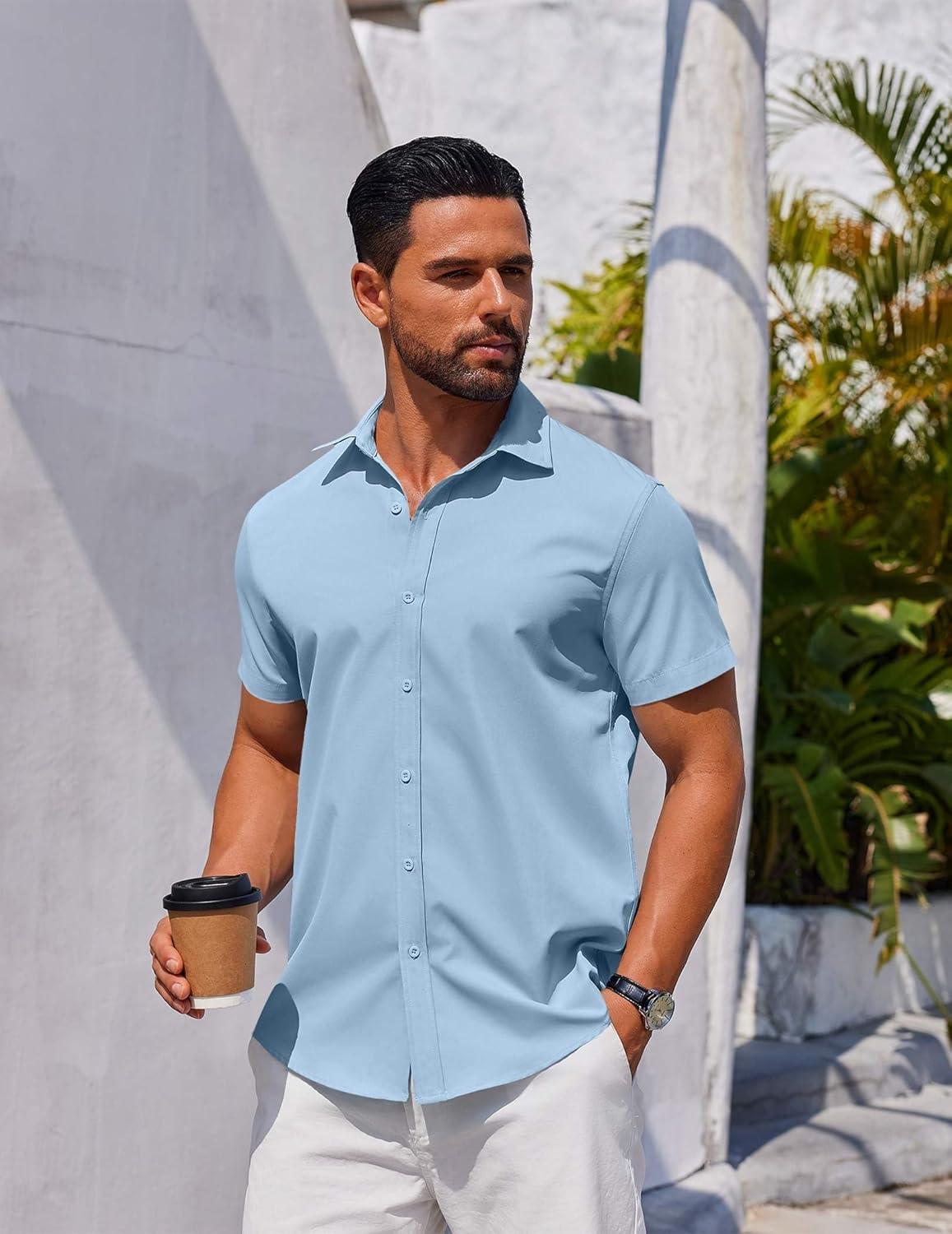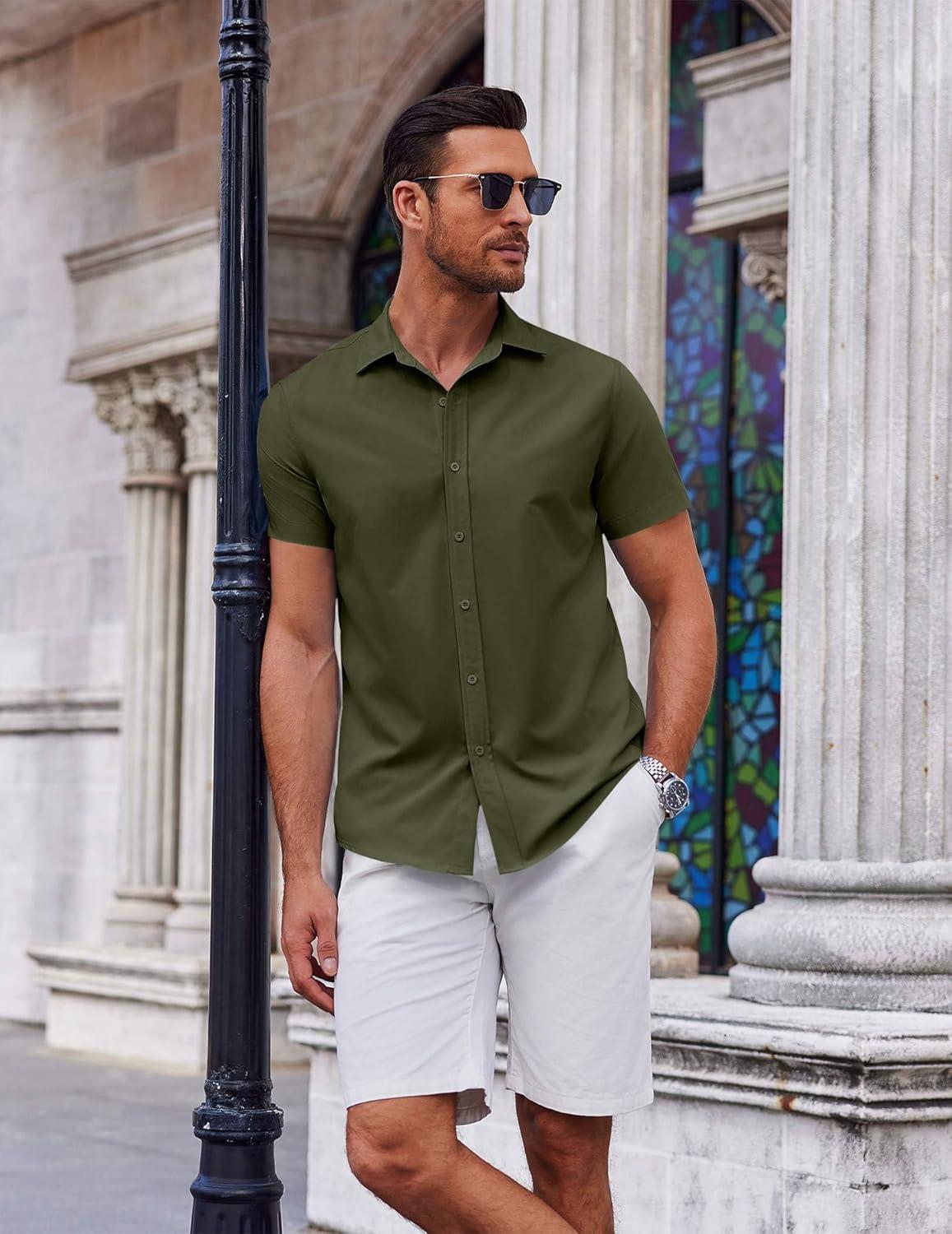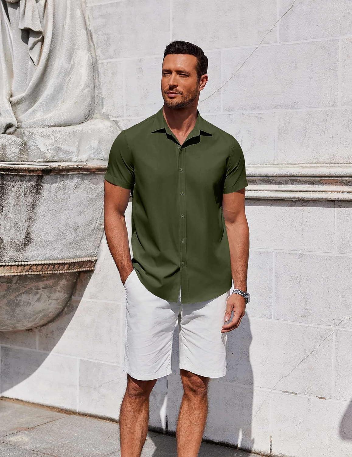 • COOFANDY Men’s Button Down Shirt Short Sleeve Casual Shirt for Men Summer Business Casual Dress Shirt(Armygreen)