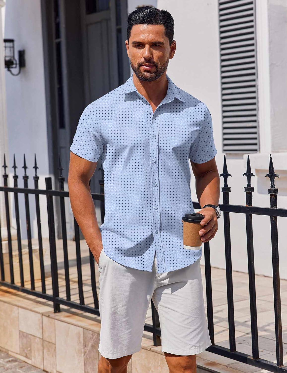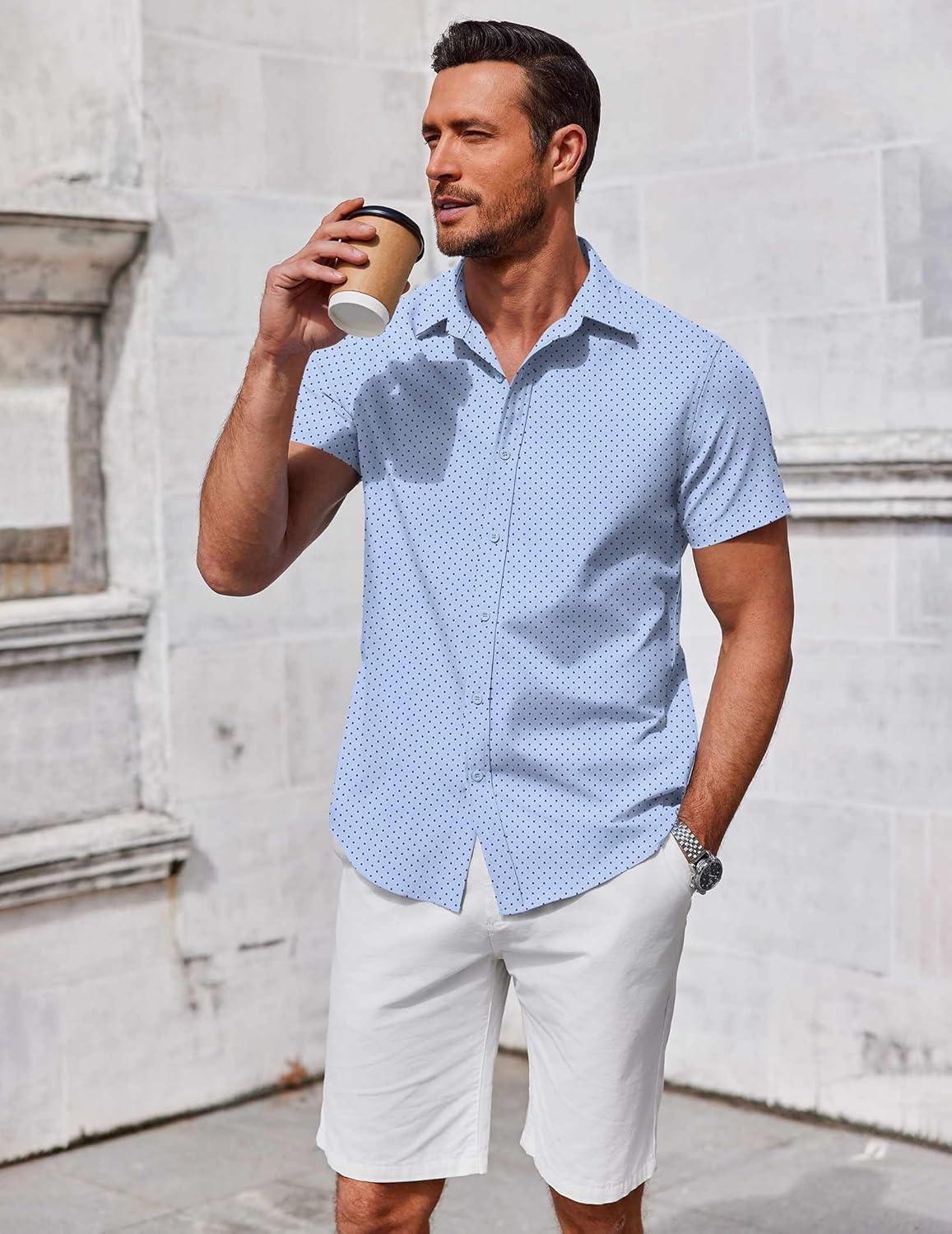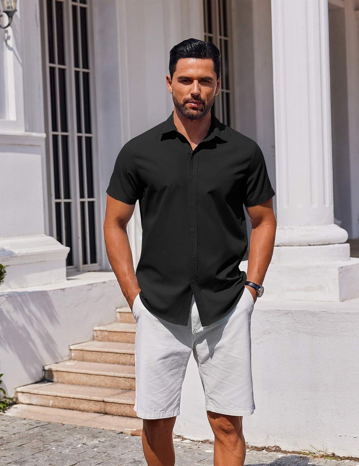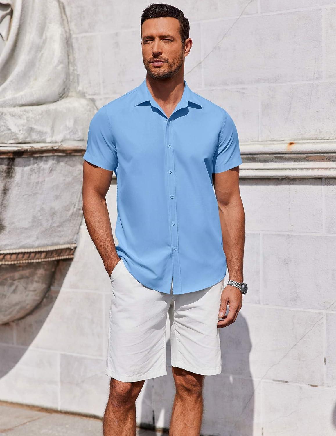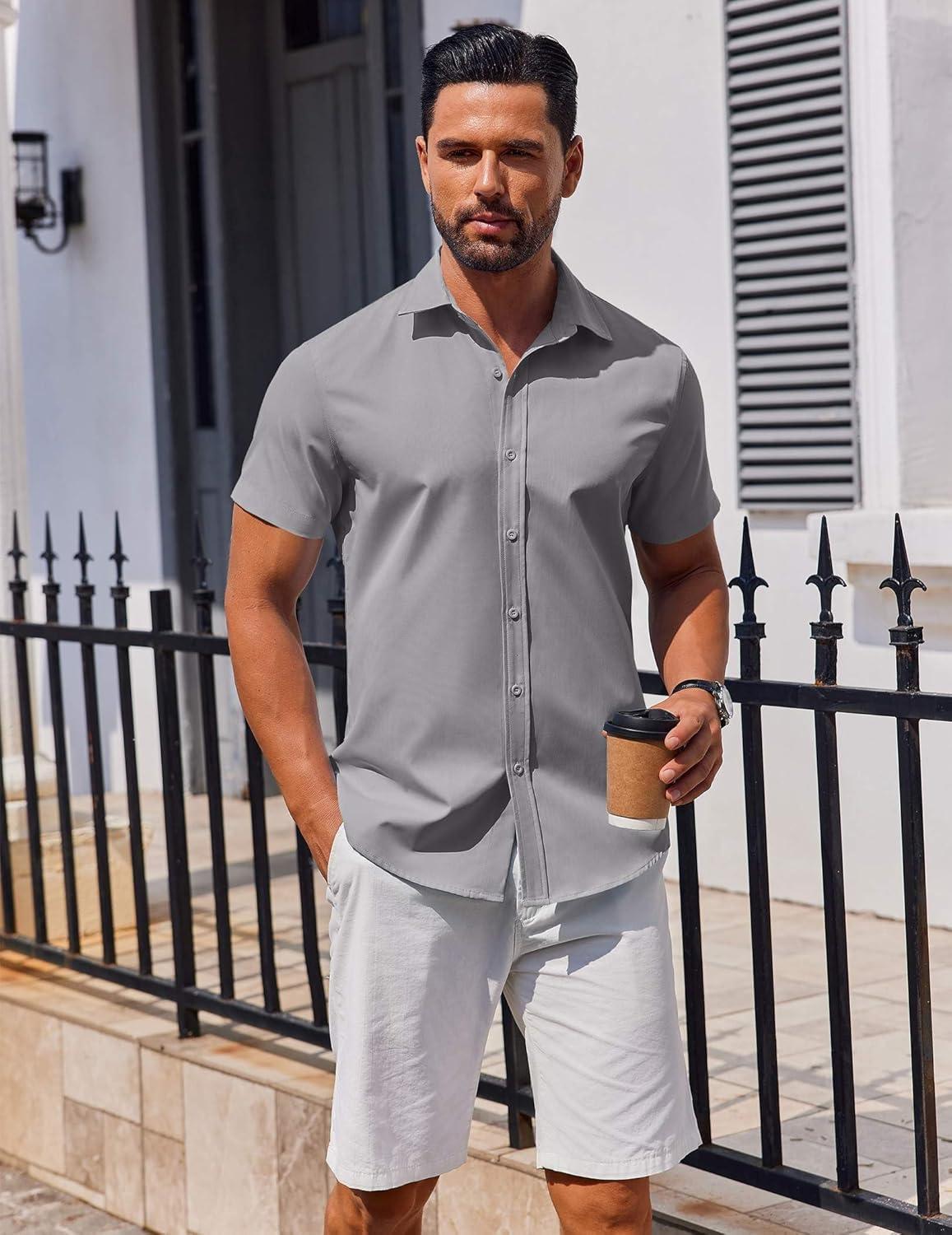 • COOFANDY Men’s Button Down Shirt Short Sleeve Casual Shirt for Men Summer Business Casual Dress Shirt(Armygreen)