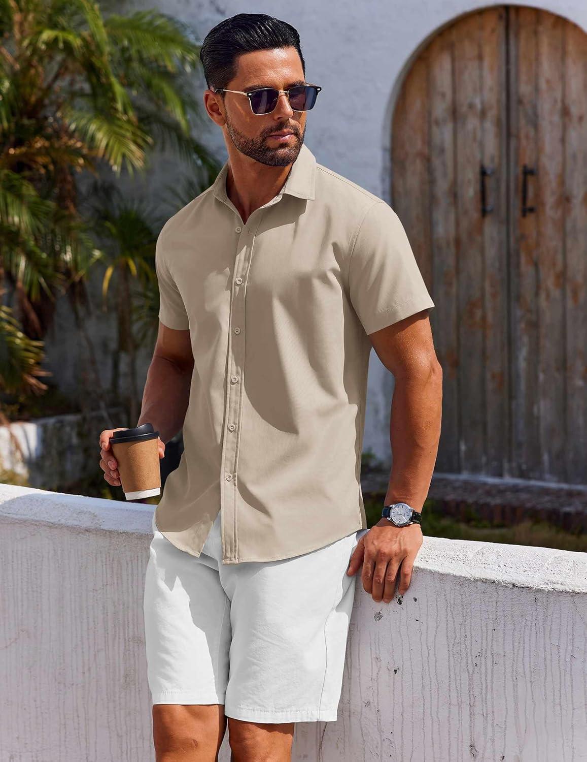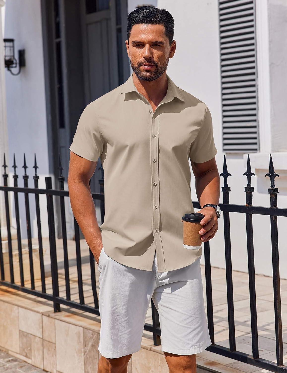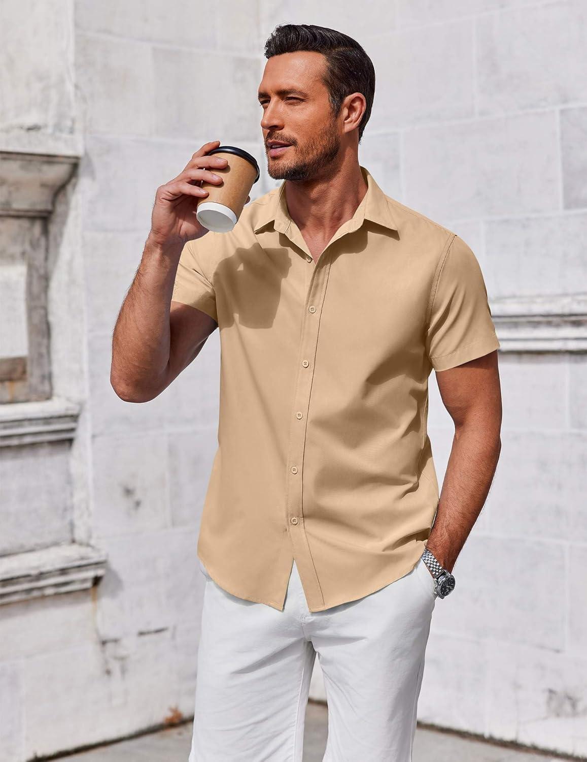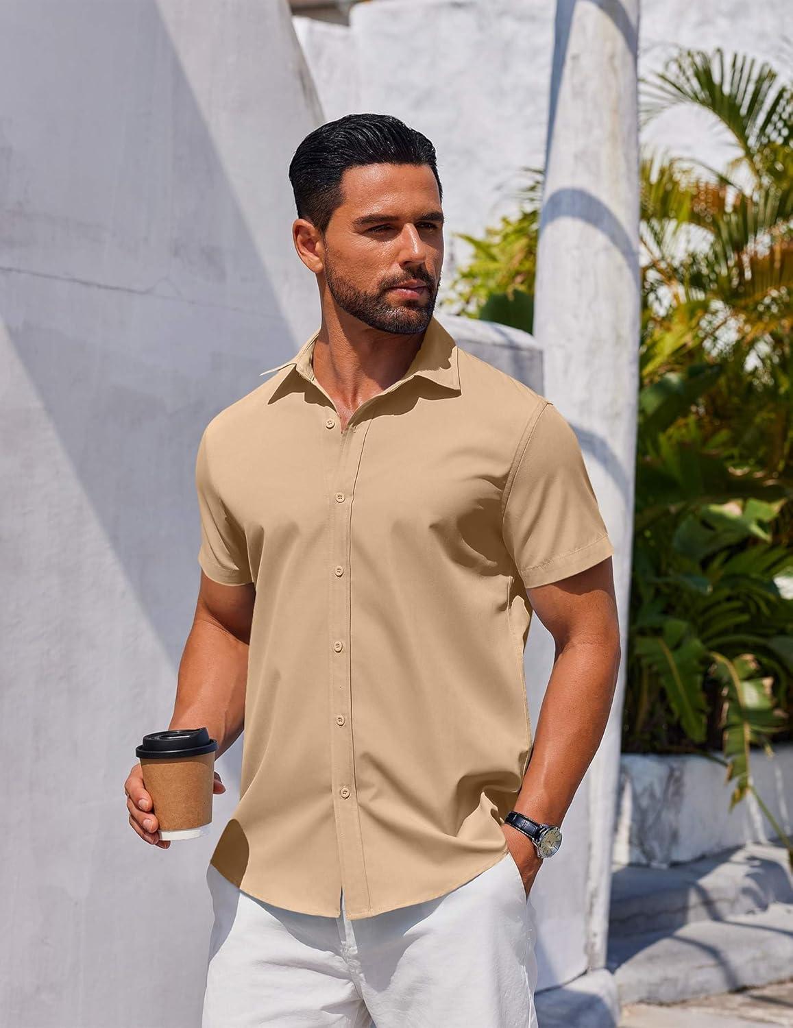 COOFANDY Men’s Button Down Shirt Short Sleeve Casual Shirt for Men Summer Business Casual Dress Shirt(Beige)