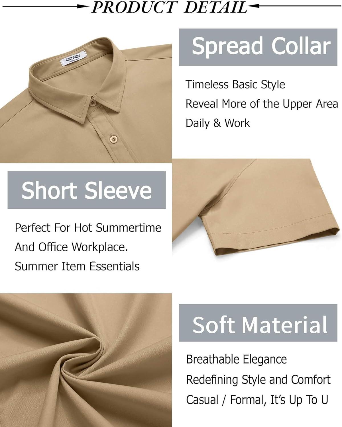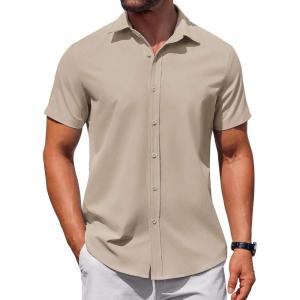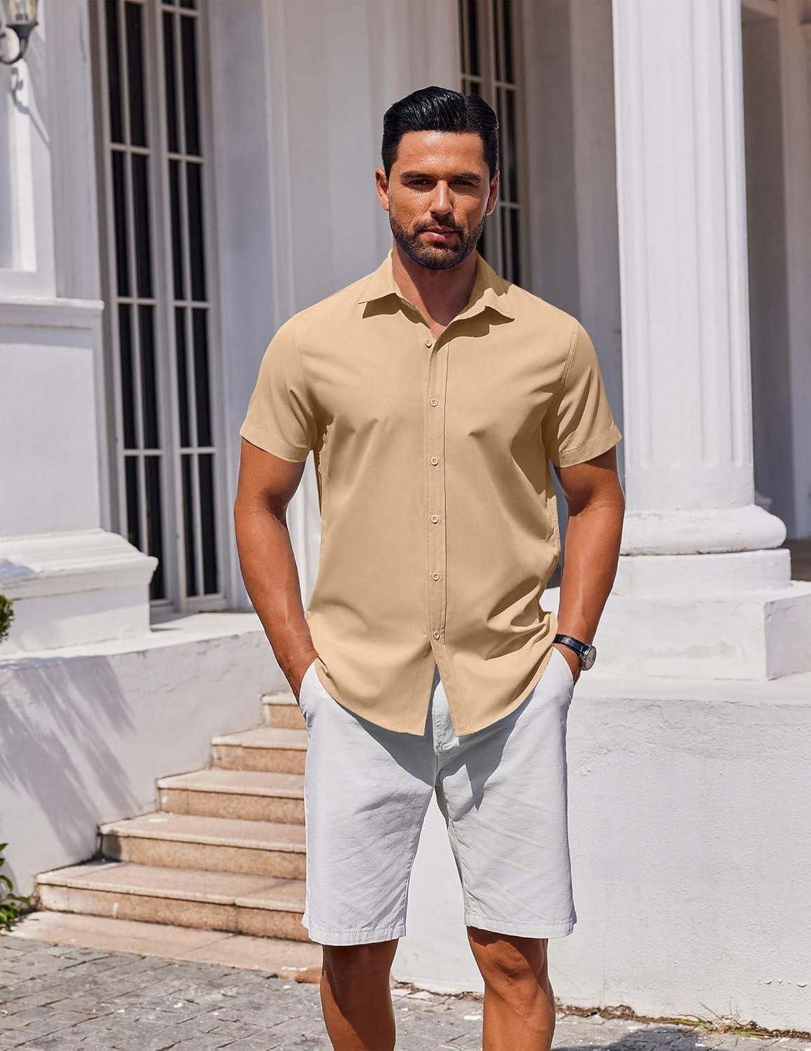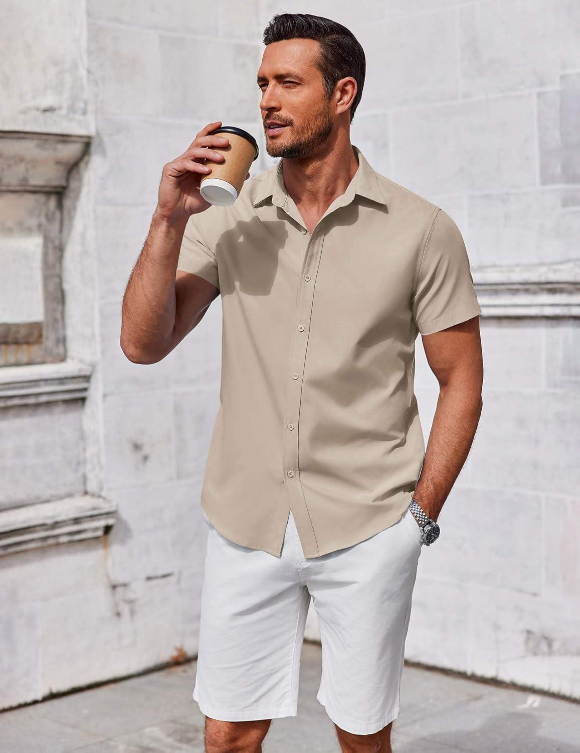 COOFANDY Men’s Button Down Shirt Short Sleeve Casual Shirt for Men Summer Business Casual Dress Shirt(Beige)