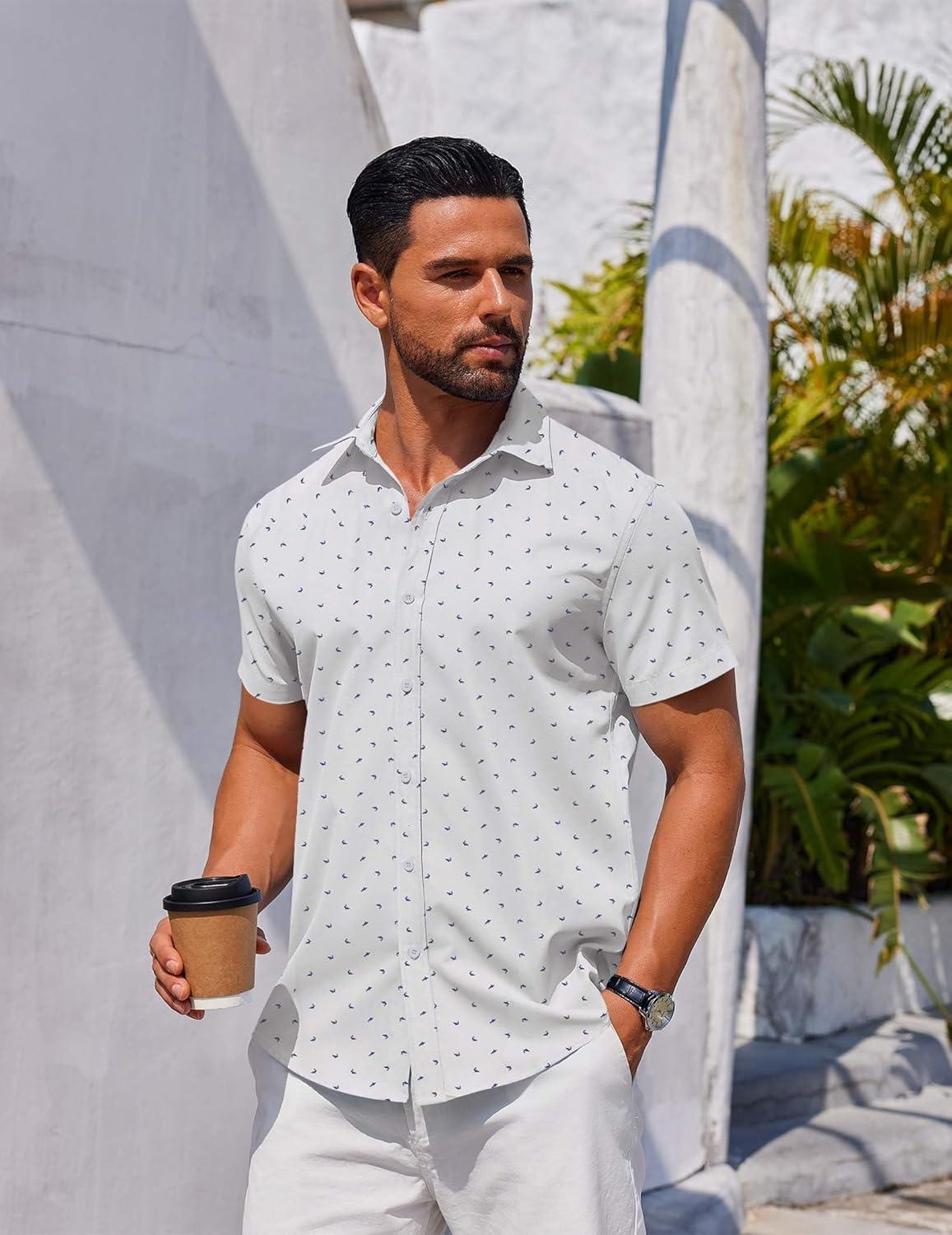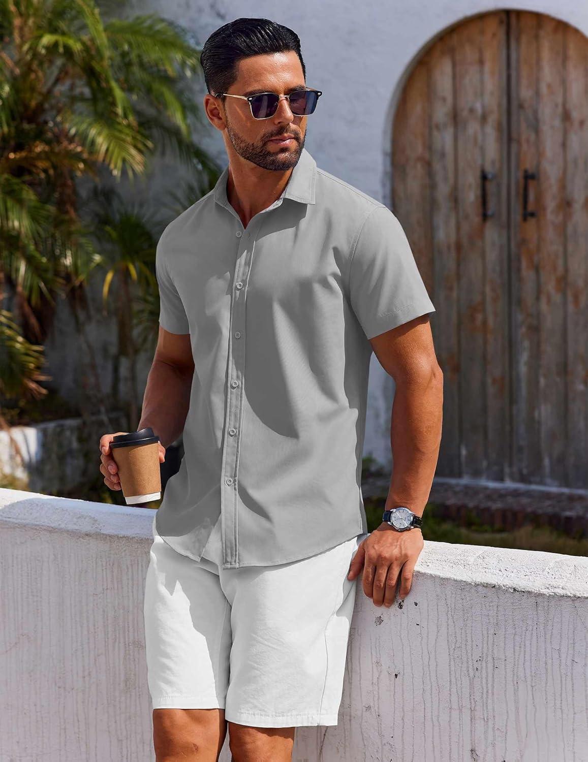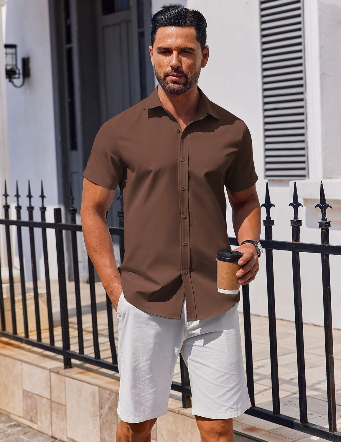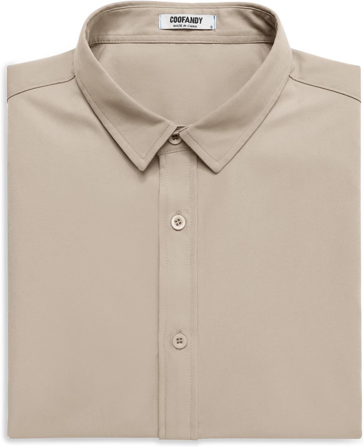 COOFANDY Men’s Button Down Shirt Short Sleeve Casual Shirt for Men Summer Business Casual Dress Shirt(Beige)