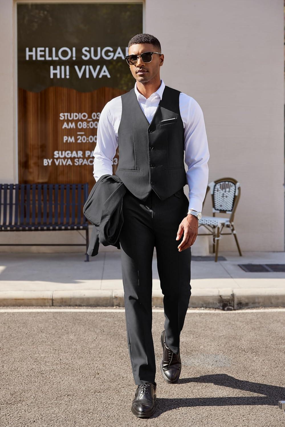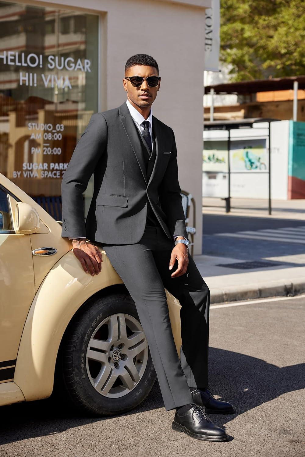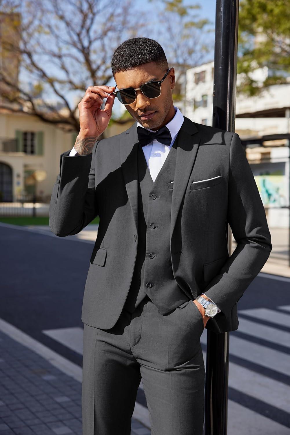 • COOFANDY Men’s 3 Pieces Suit Classic One Button Single Breasted Slim Fit Blazer Jacket Vest Pants Set Wedding Busines(Dark Grey)