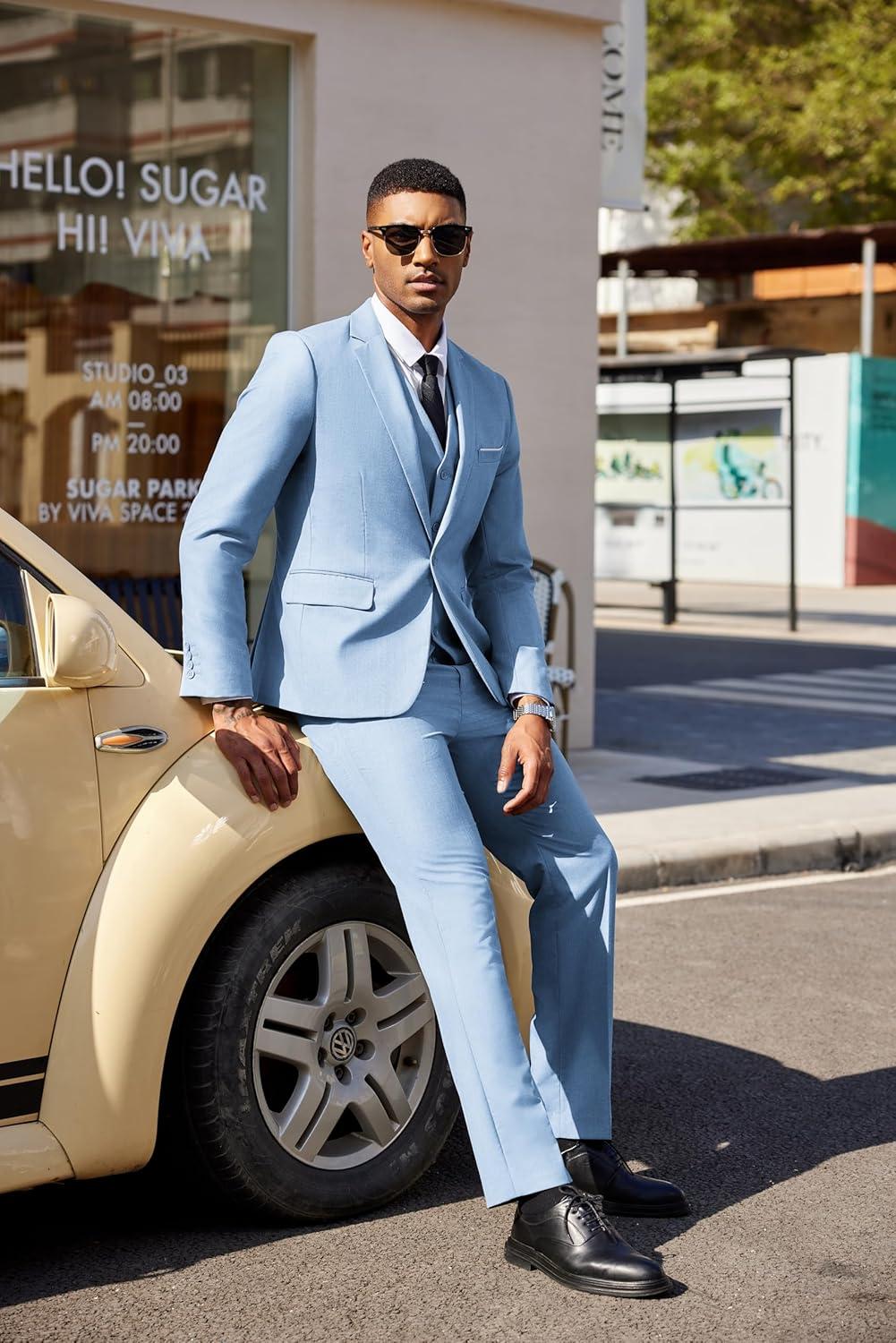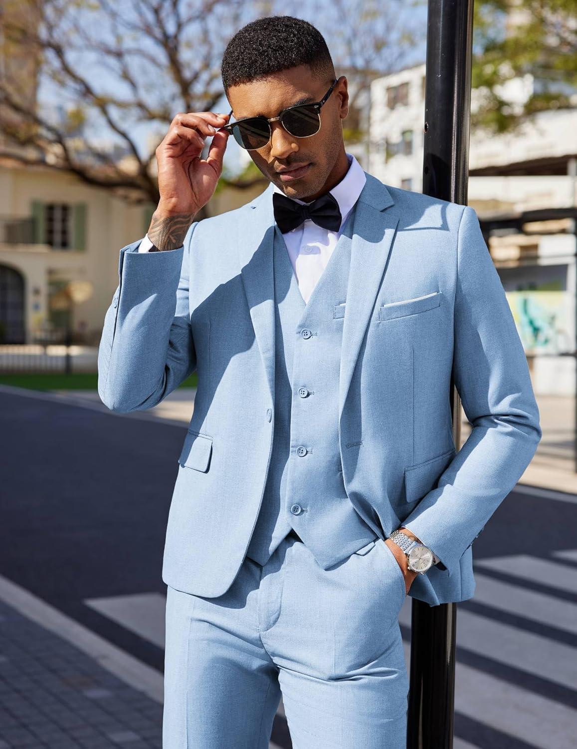• COOFANDY Men’s 3 Pieces Suit Classic One Button Single Breasted Slim Fit Blazer Jacket Vest Pants Set Wedding Busines(Sky Blue)