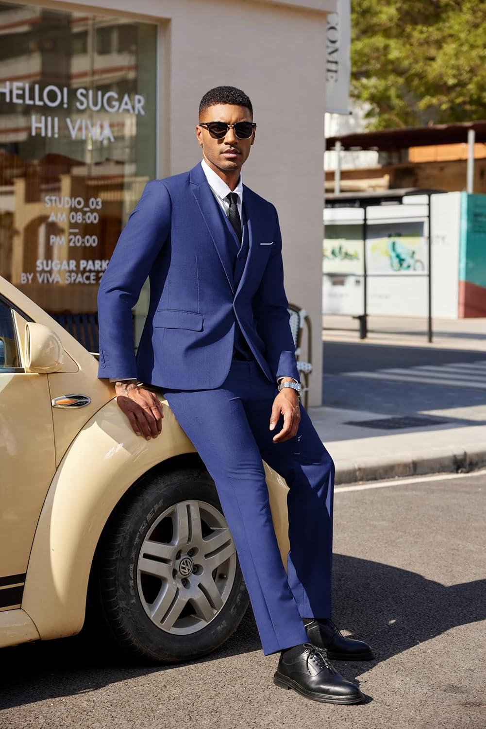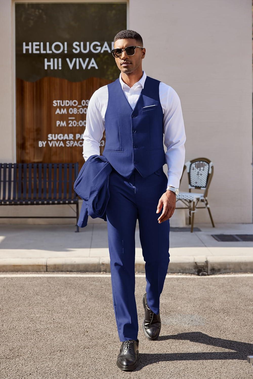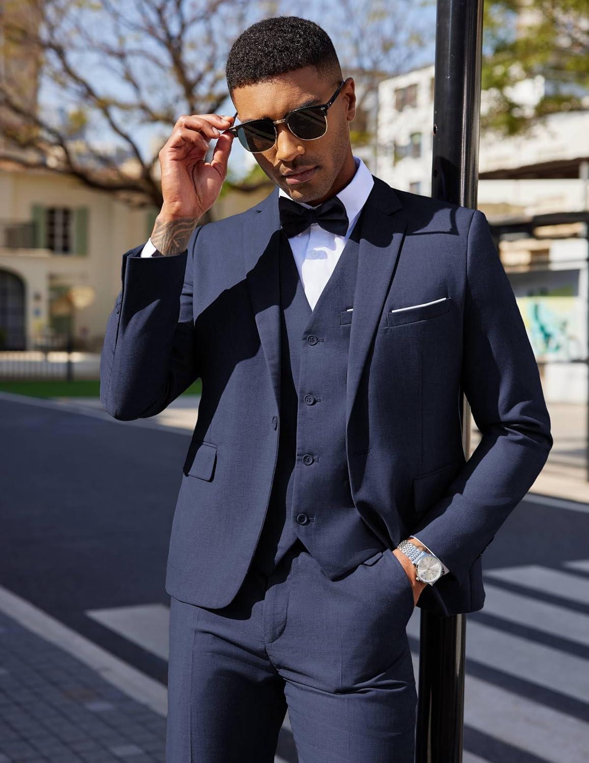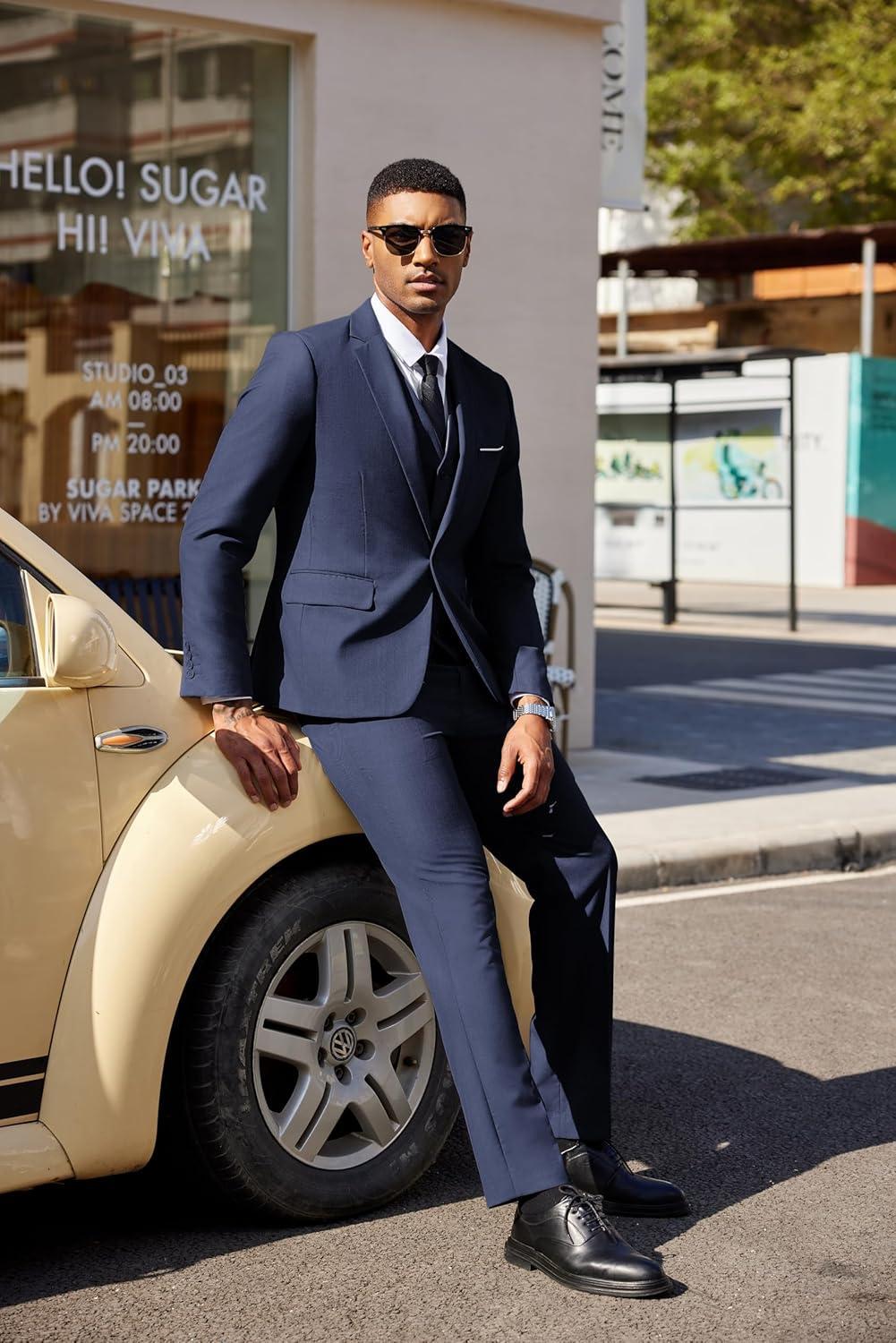 • COOFANDY Men’s 3 Pieces Suit Classic One Button Single Breasted Slim Fit Blazer Jacket Vest Pants Set Wedding Busines(Navy Blue)