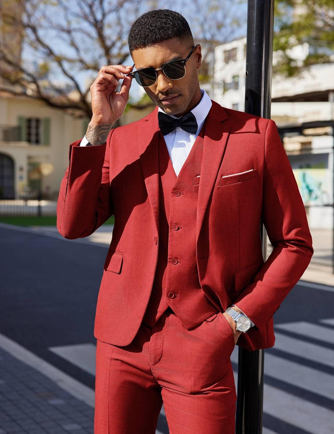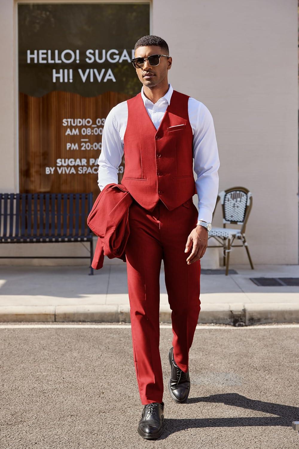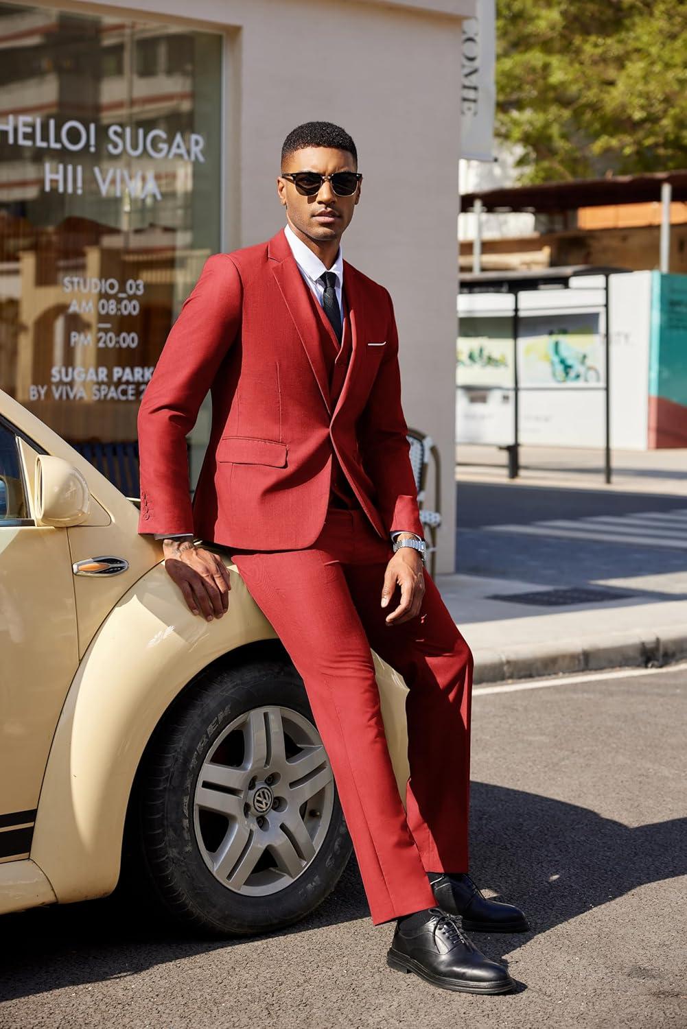 • COOFANDY Men’s 3 Pieces Suit Classic One Button Single Breasted Slim Fit Blazer Jacket Vest Pants Set Wedding Busines(Red)