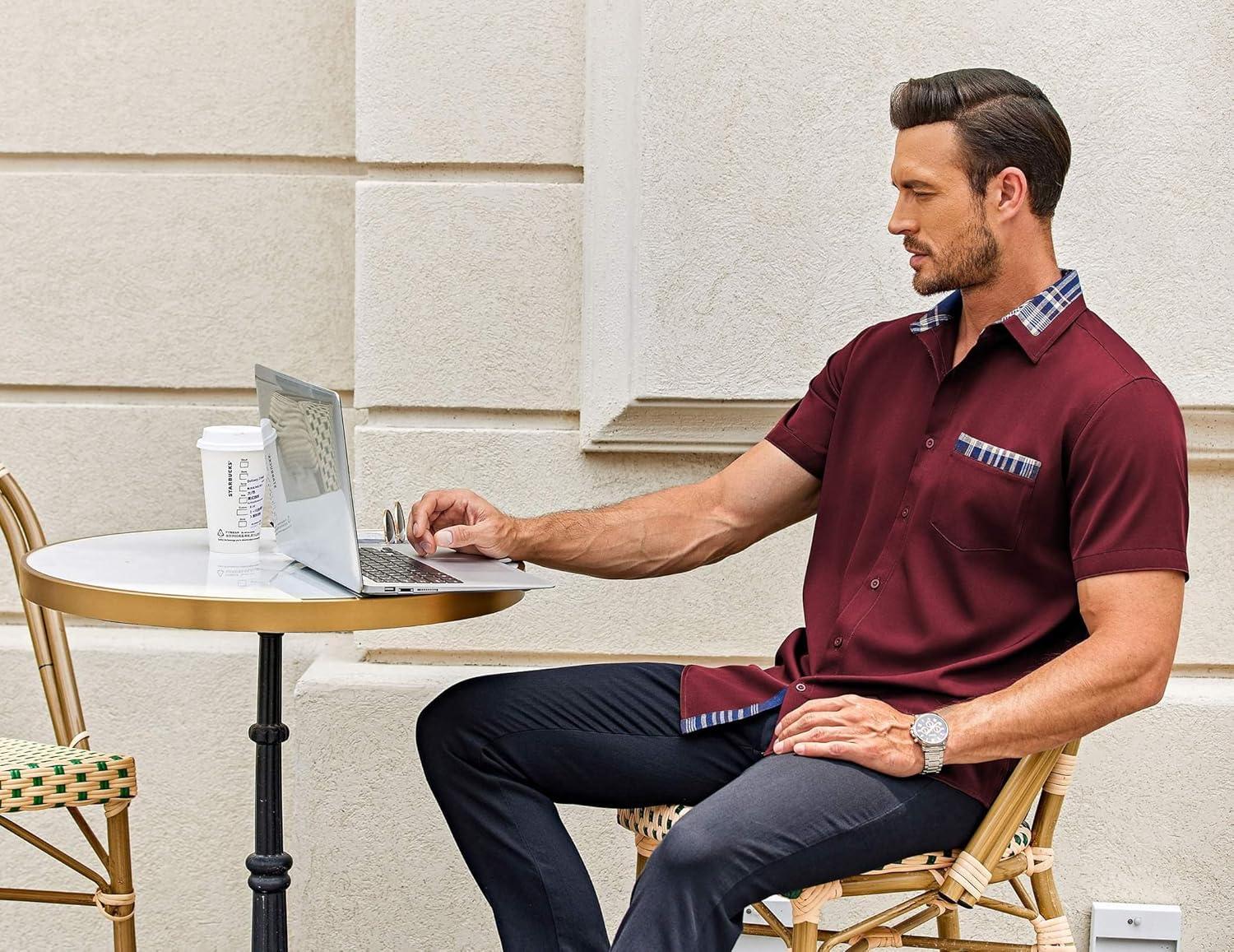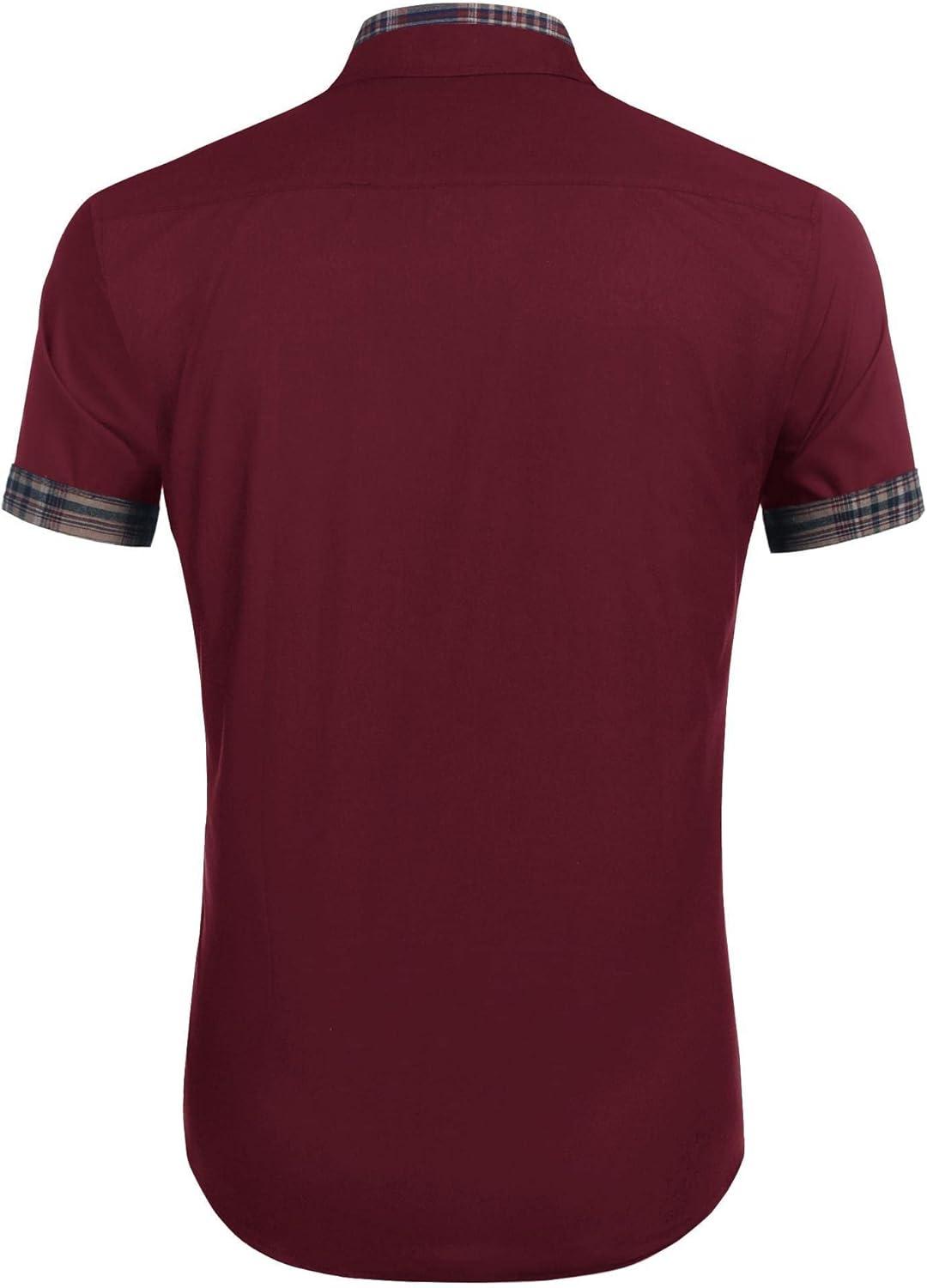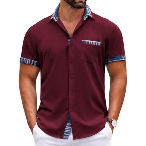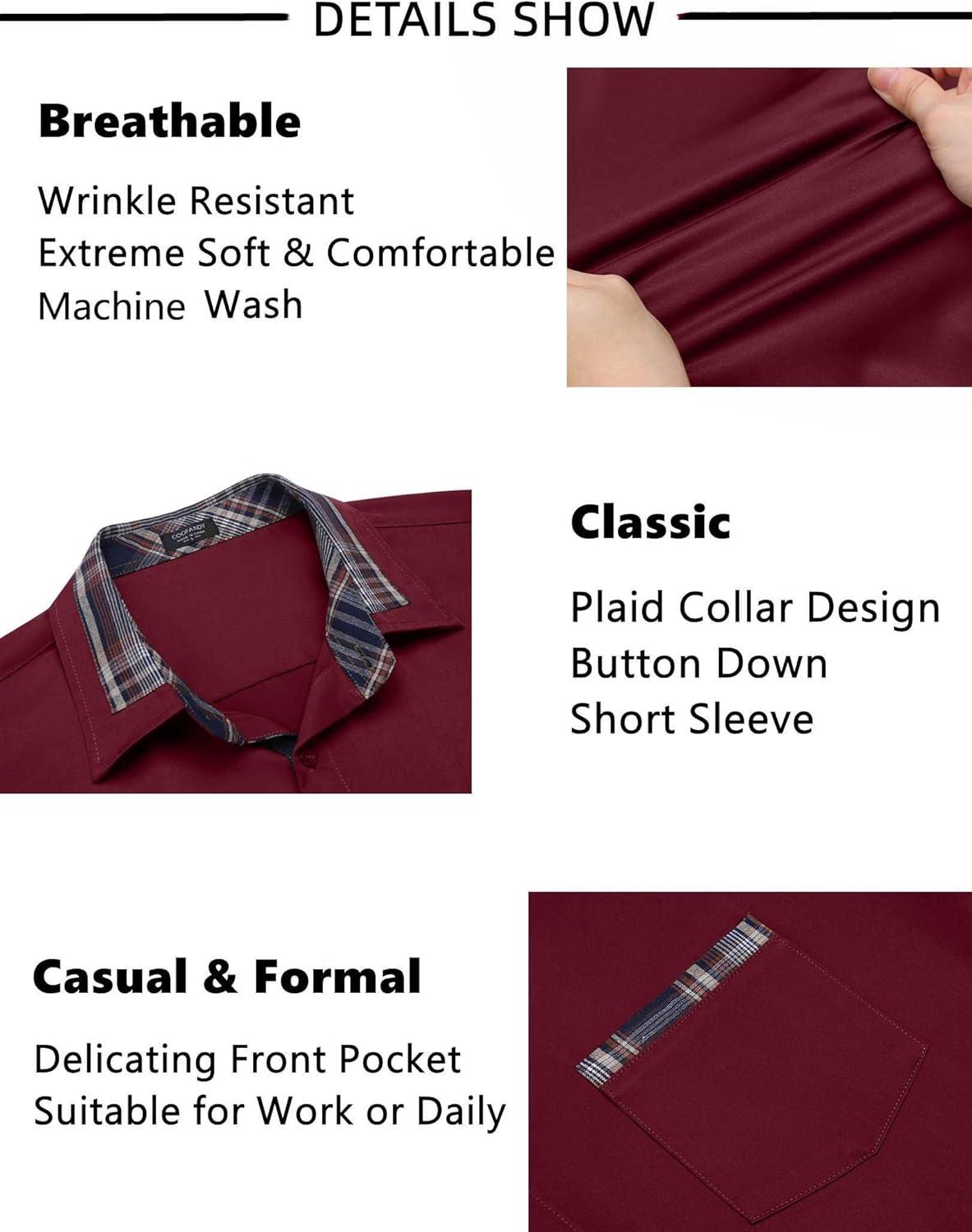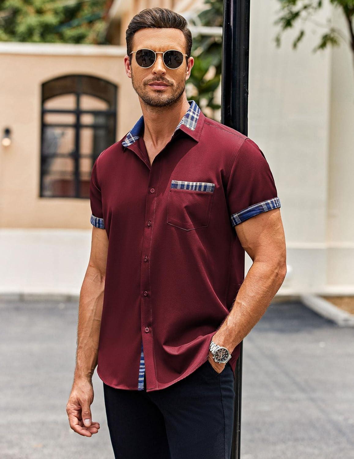 COOFANDY Mens Casual Wrinkle Free Shirts Short Sleeve Button Down Summer Stretch Dress Shirt(Wine Red)