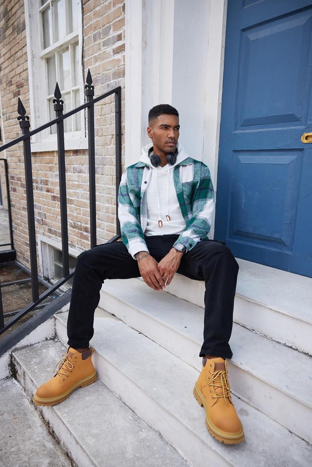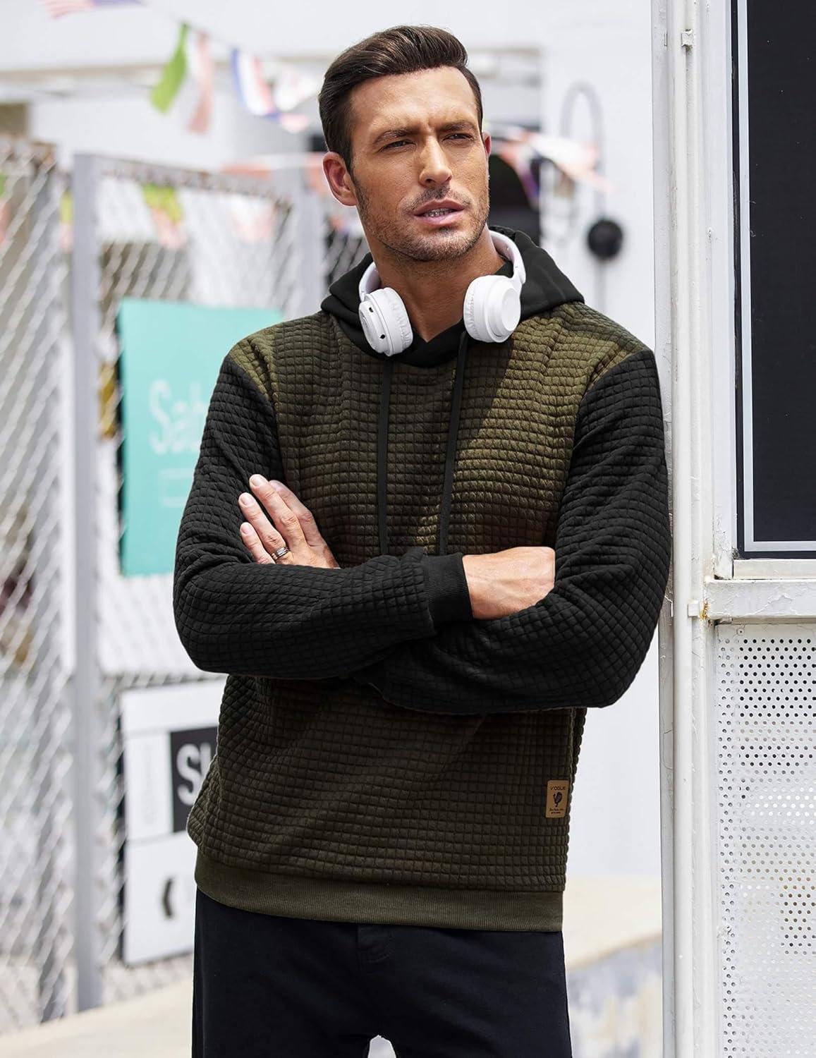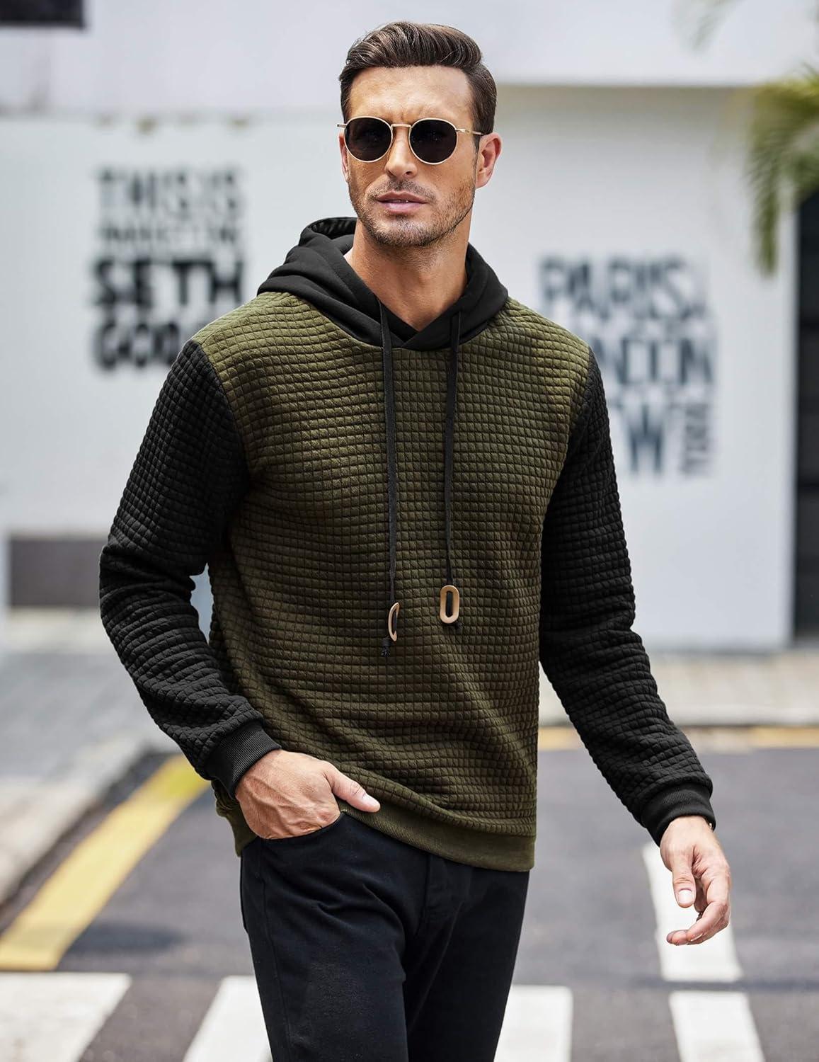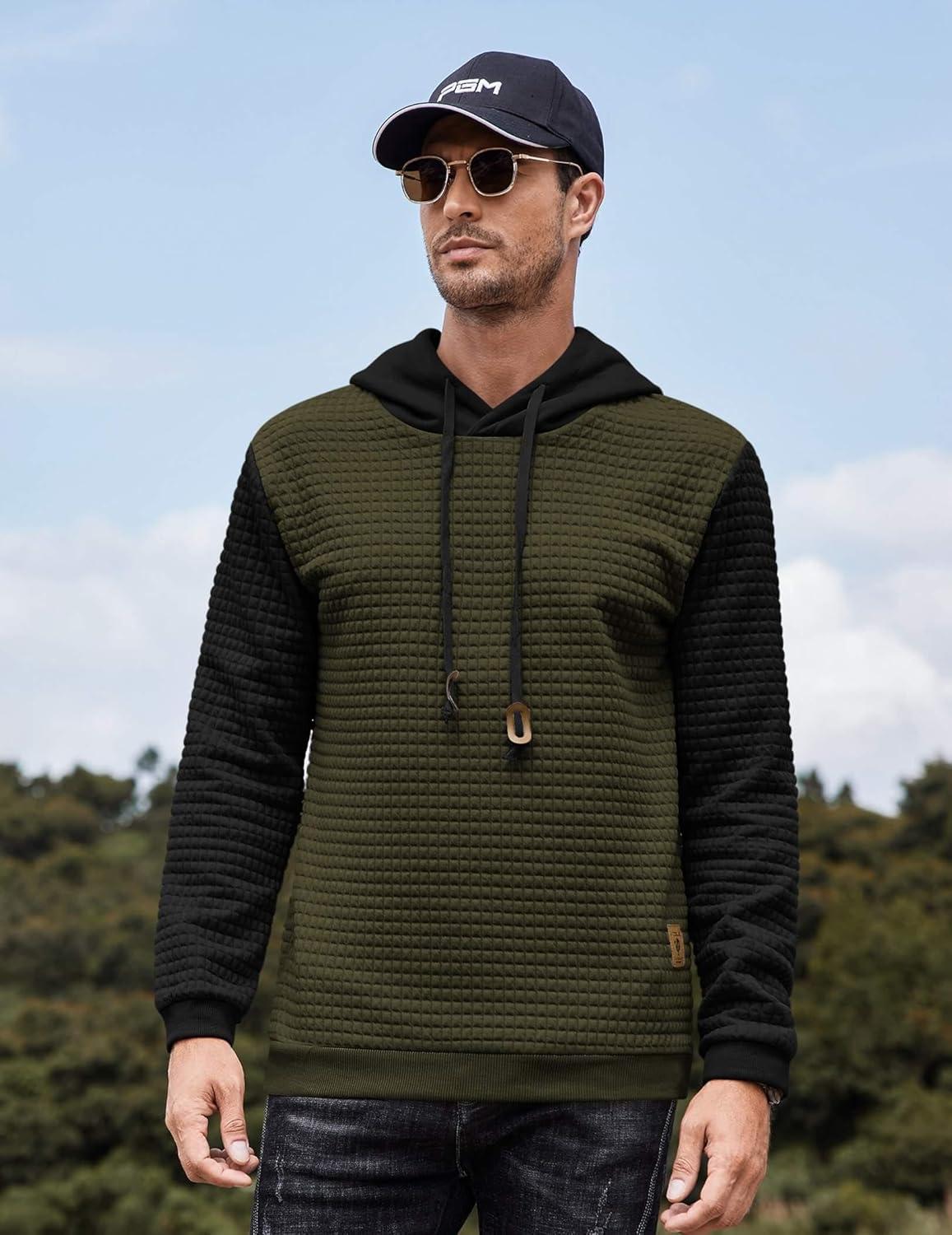 COOFANDY Mens Hooded Sweatshirt Casual Long Sleeve Drawstring Waffle Knit Pullover Hoodies(Pat6(army Green&black))