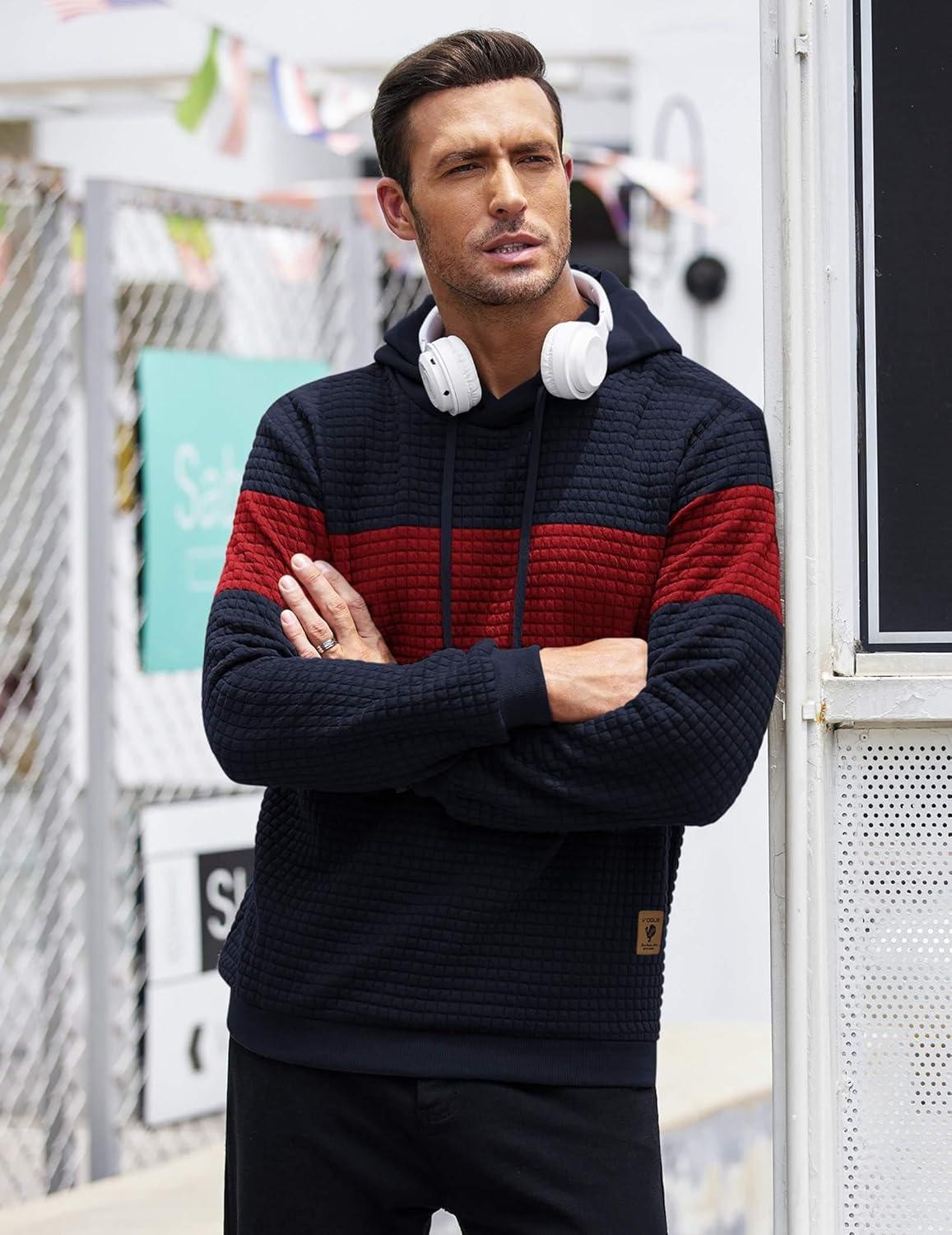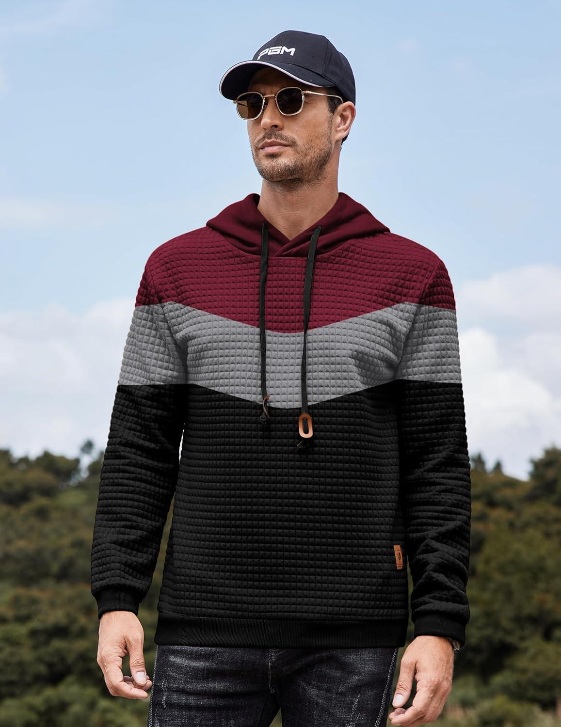 COOFANDY Mens Hooded Sweatshirt Casual Long Sleeve Drawstring Waffle Knit Pullover Hoodies(Pat9(navy Blue&wine Red))