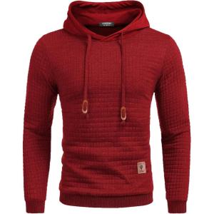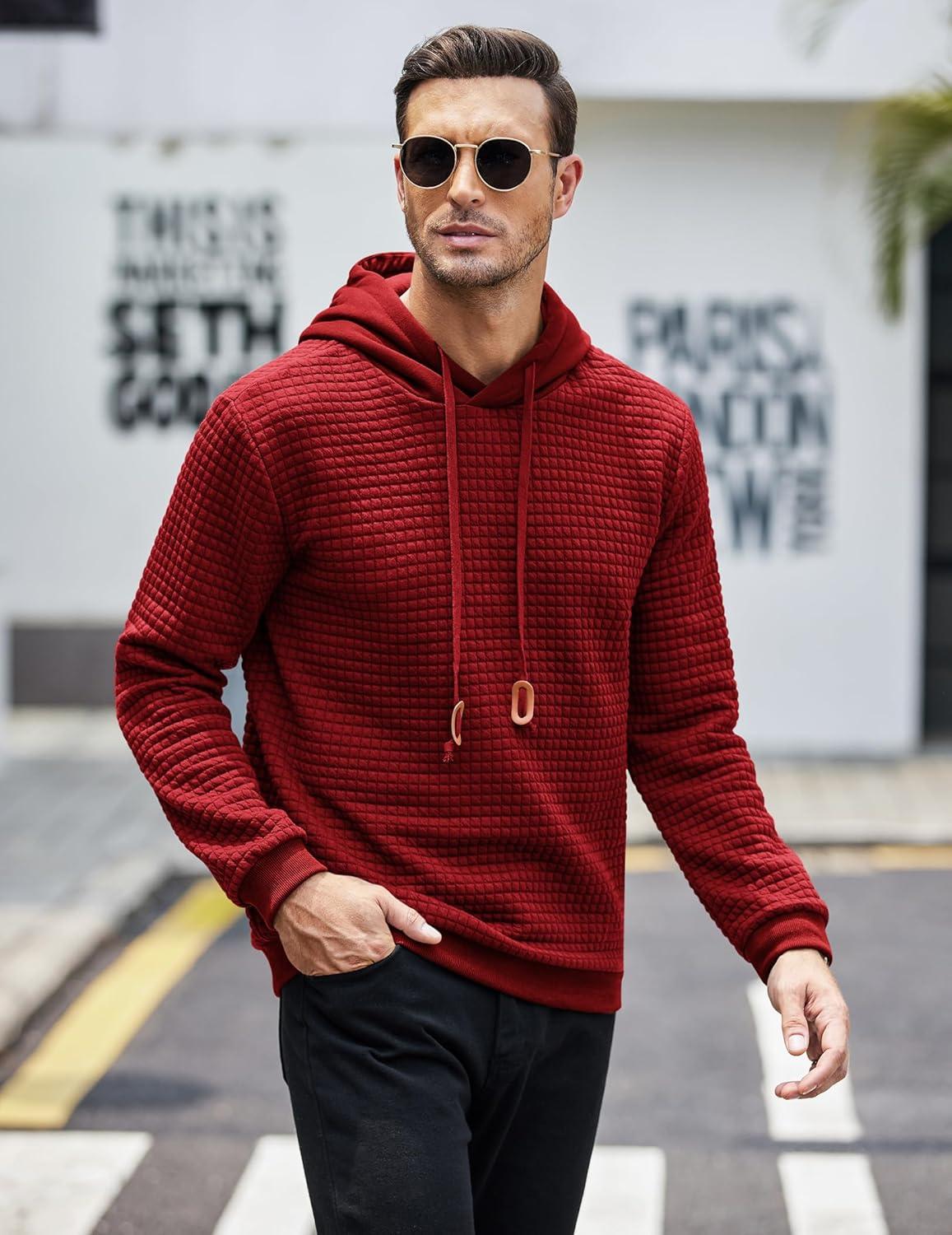 COOFANDY Mens Hooded Sweatshirt Casual Long Sleeve Drawstring Waffle Knit Pullover Hoodies(Red)