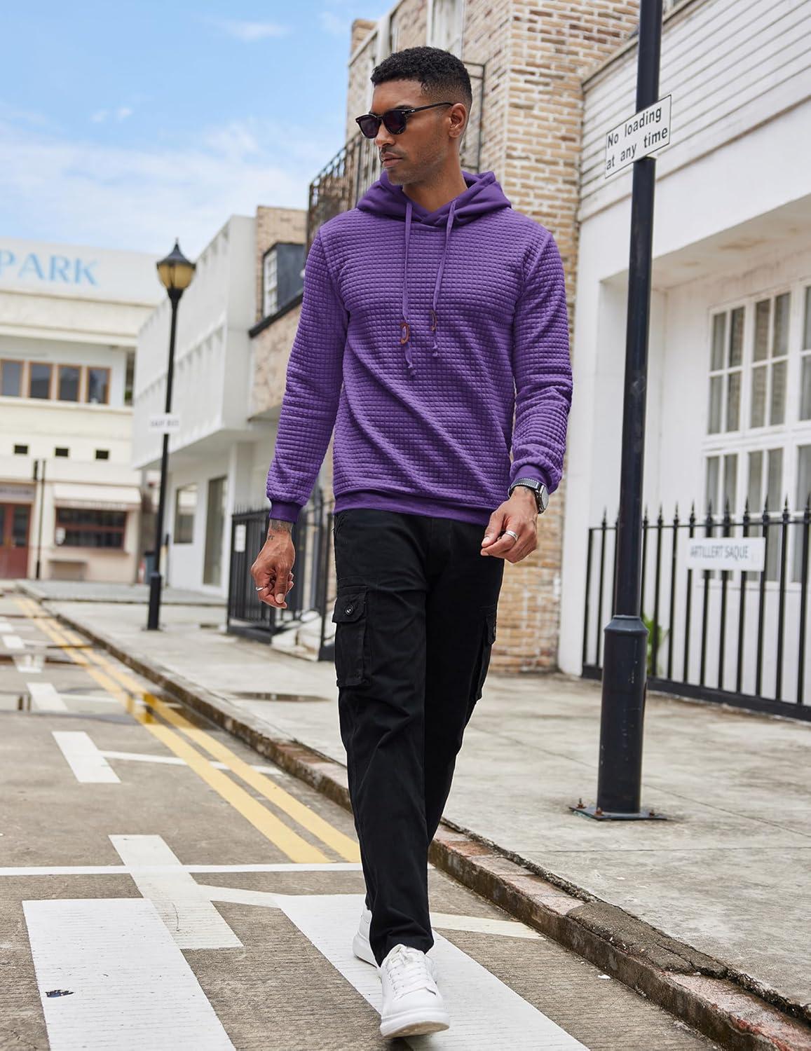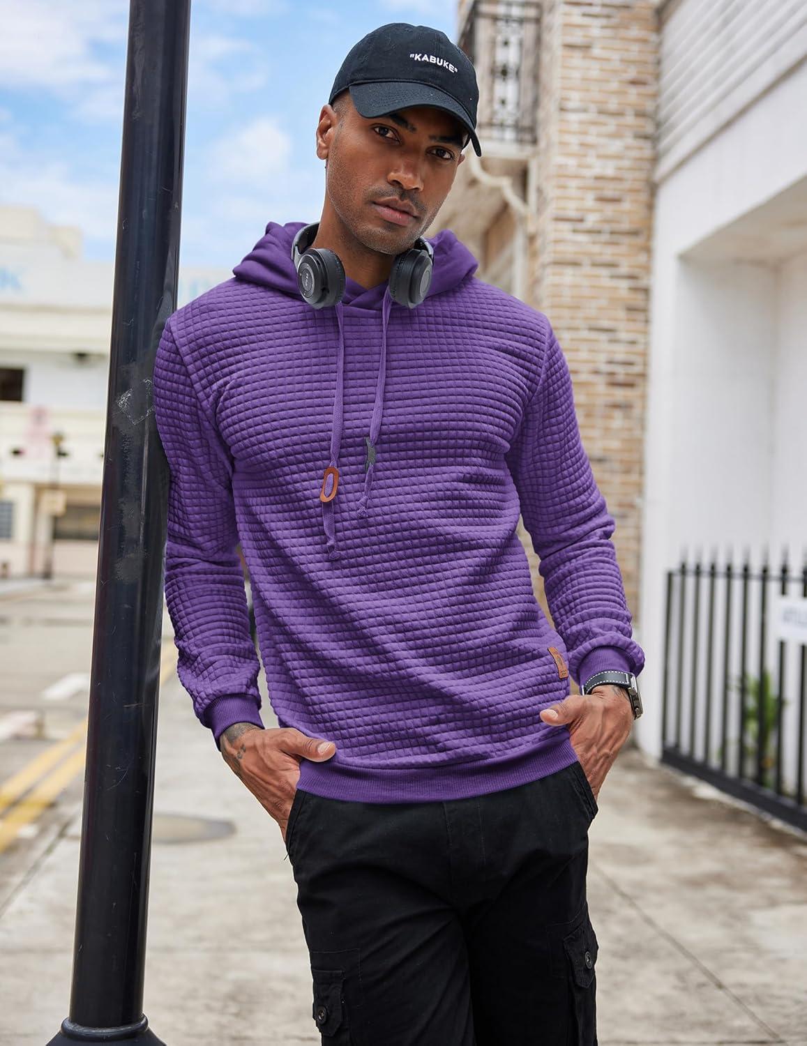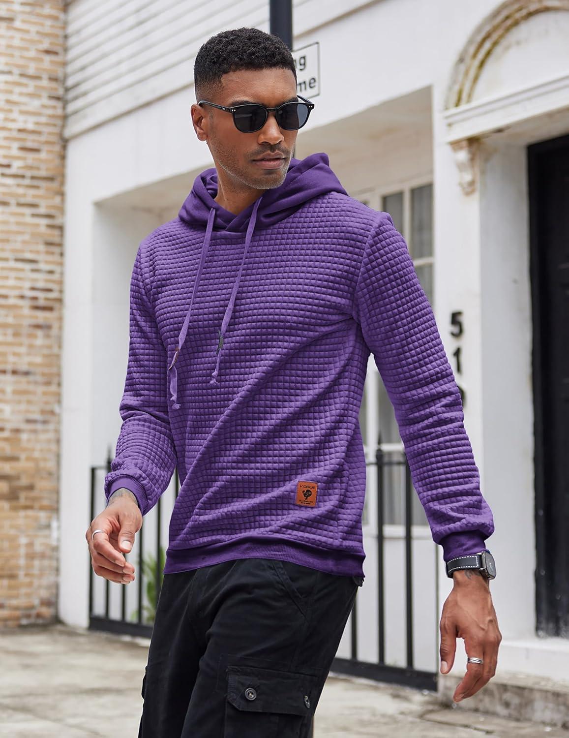 COOFANDY Mens Hooded Sweatshirt Casual Long Sleeve Drawstring Waffle Knit Pullover Hoodies(Violet)