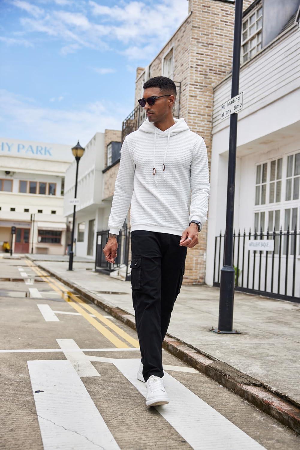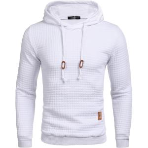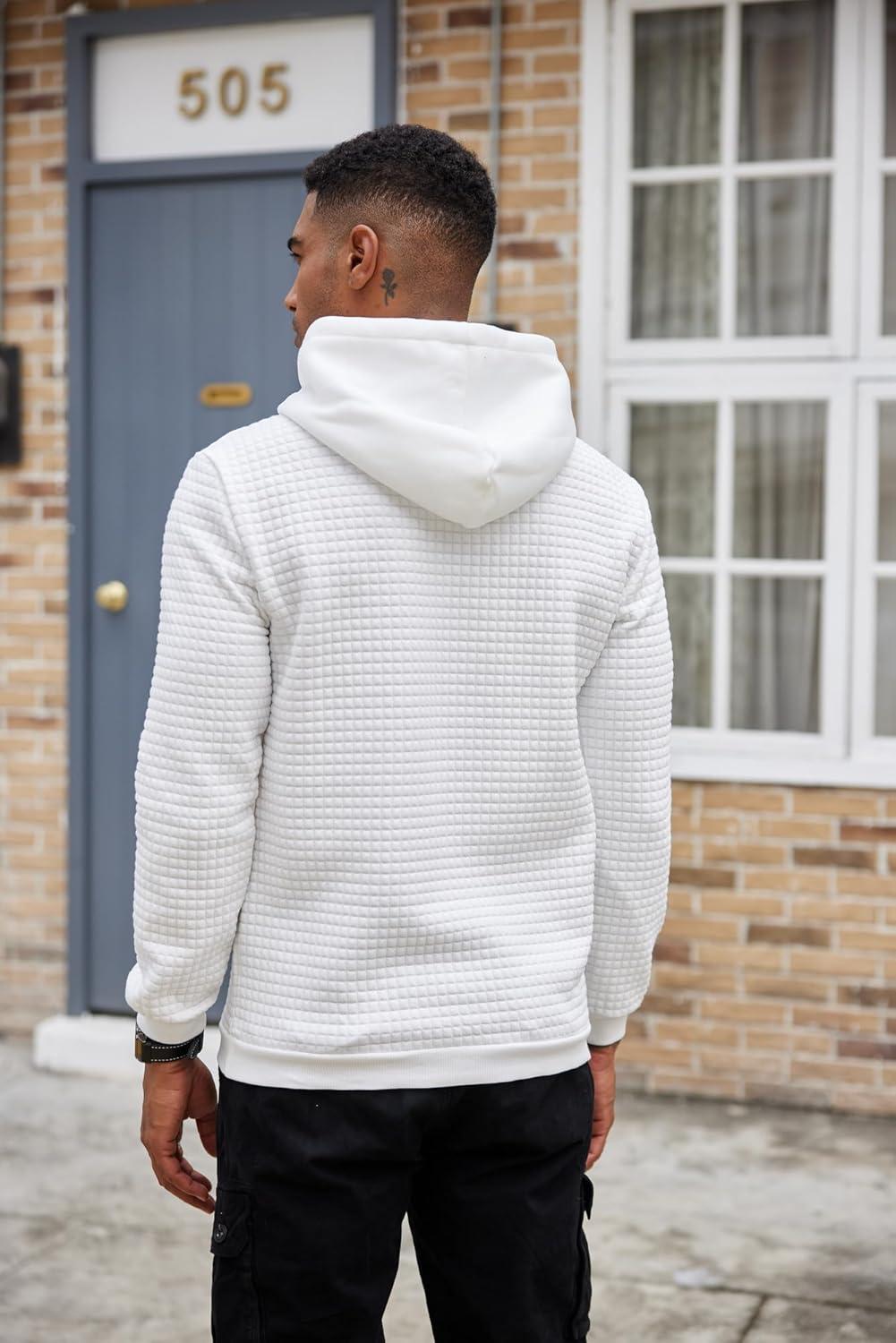 COOFANDY Mens Hooded Sweatshirt Casual Long Sleeve Drawstring Waffle Knit Pullover Hoodies(White)