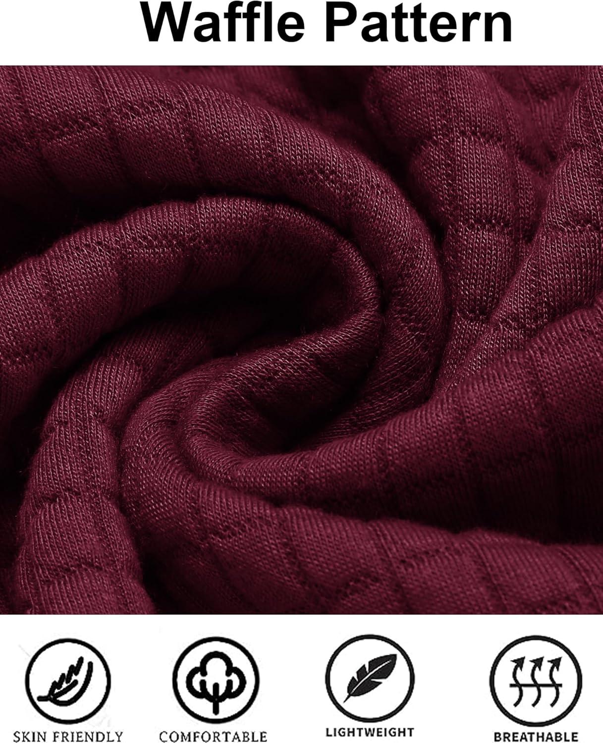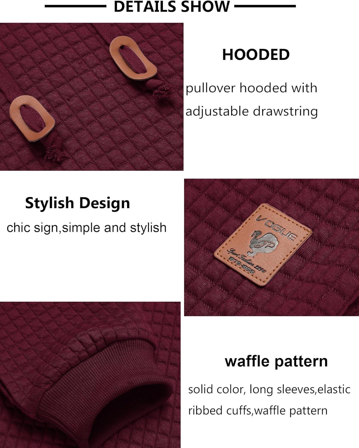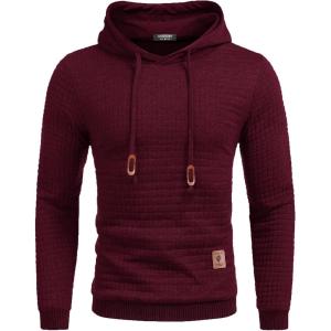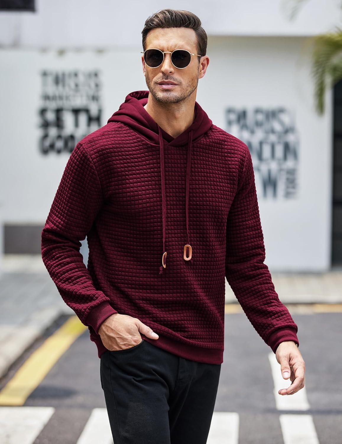 COOFANDY Mens Hooded Sweatshirt Casual Long Sleeve Drawstring Waffle Knit Pullover Hoodies(Wine Red)