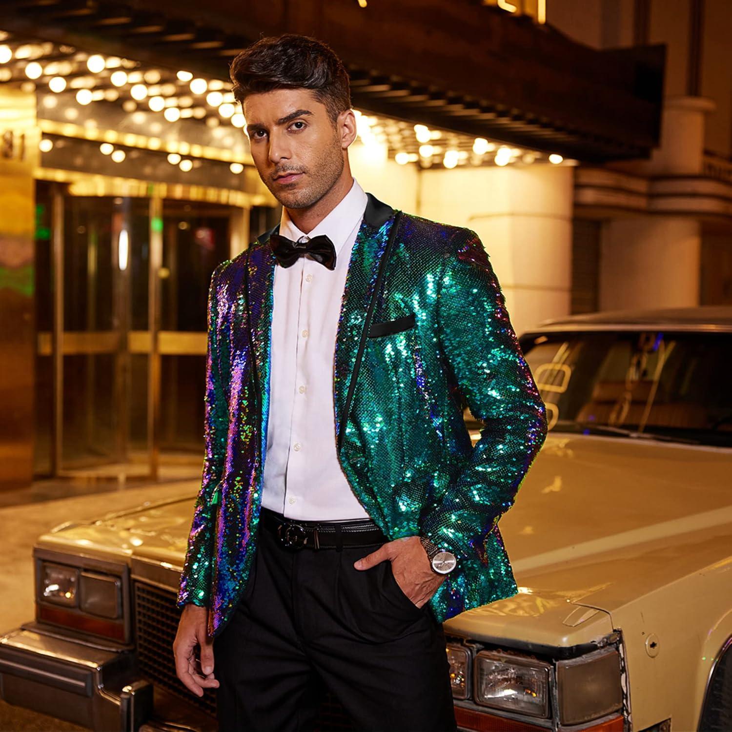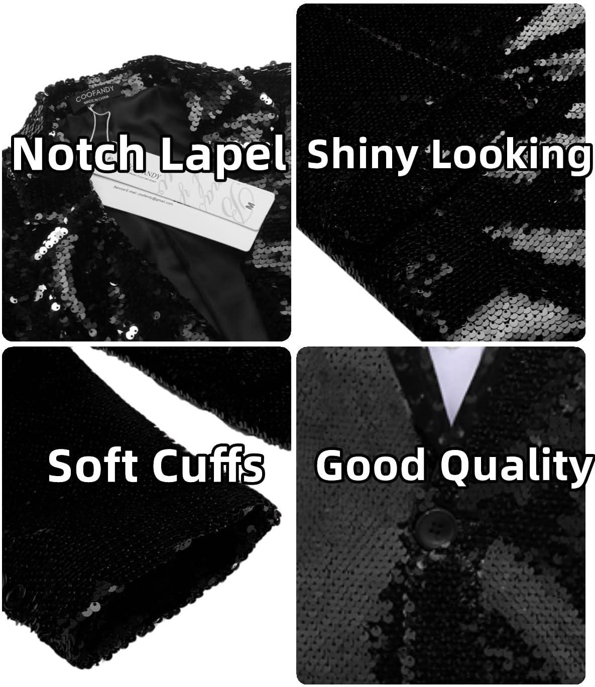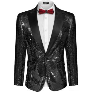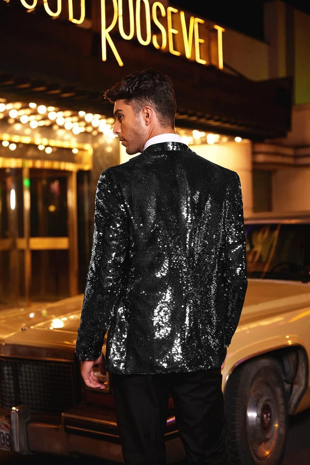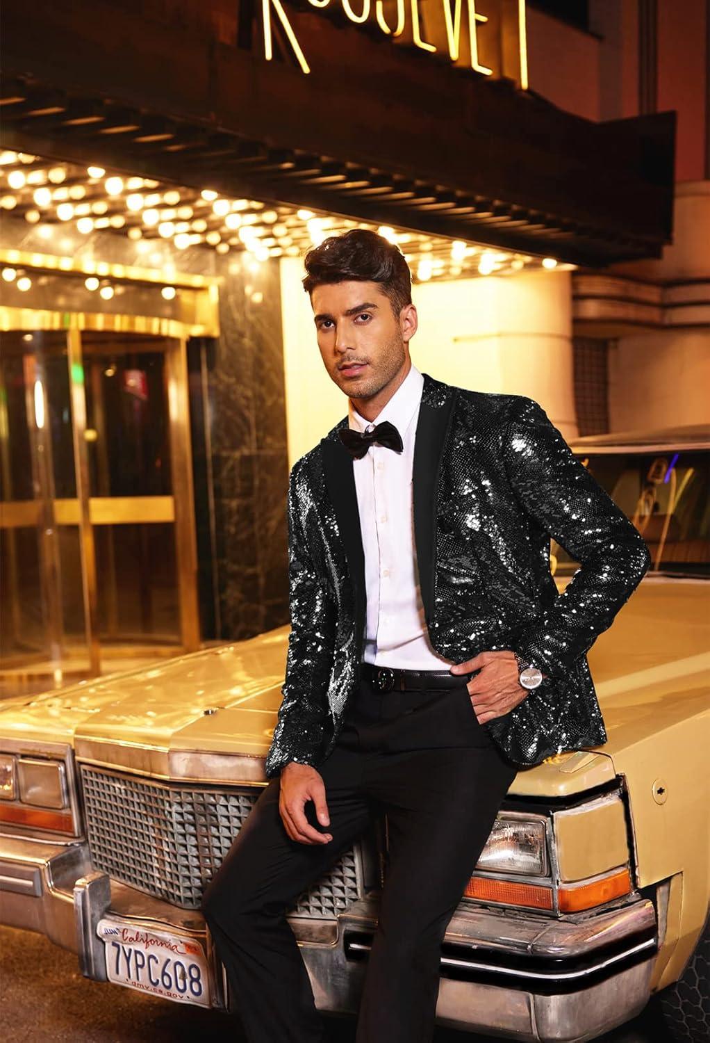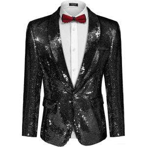 • COOFANDY Mens Sequin Blazer Tuxedo Party Prom Wedding Tuxedo One Button Jacket(Black)
