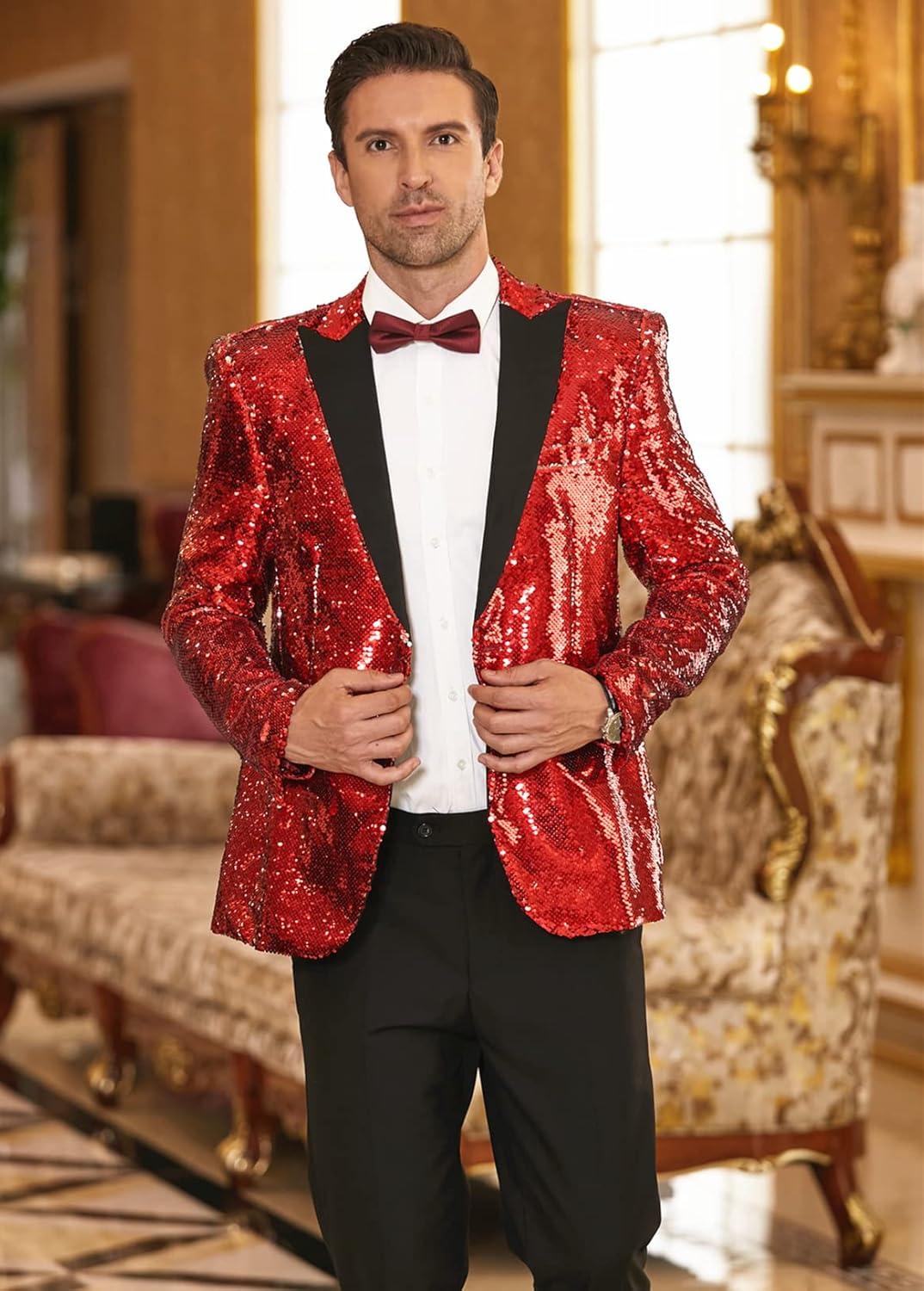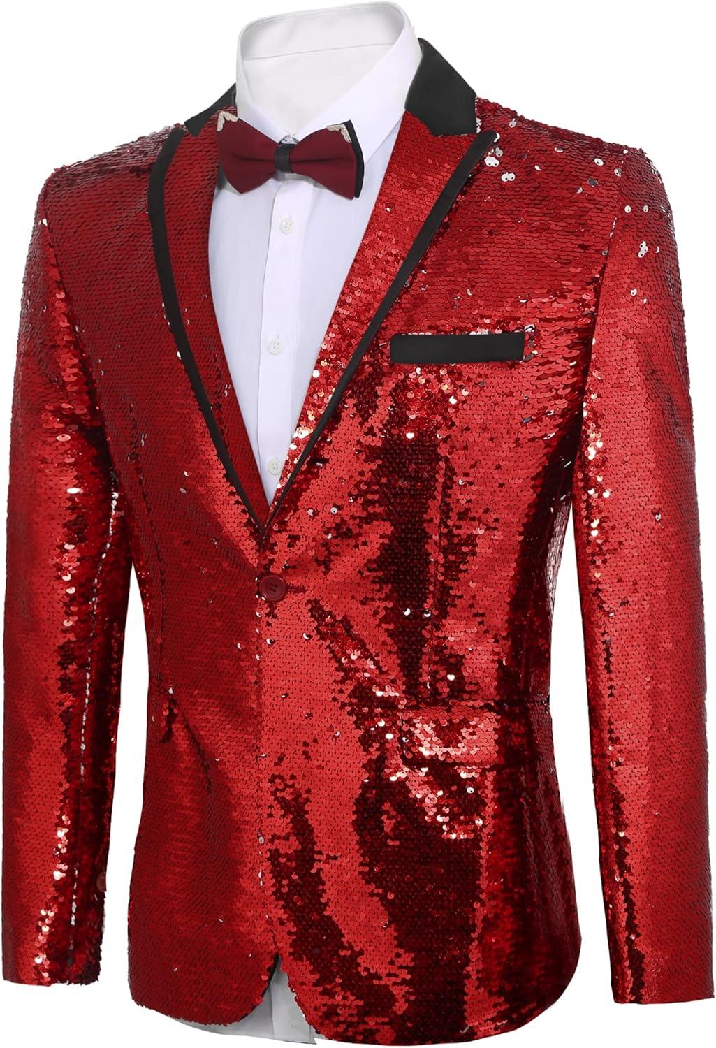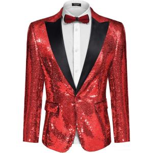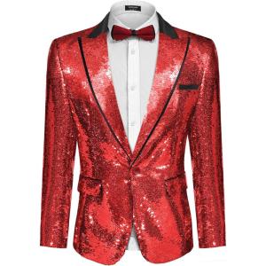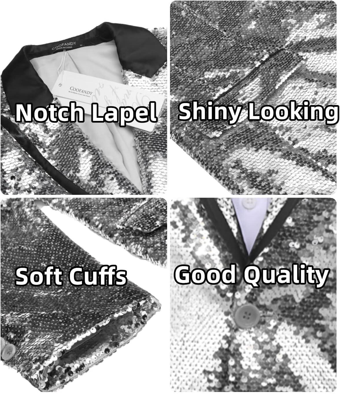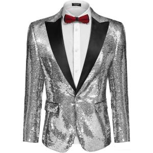 • COOFANDY Mens Sequin Blazer Tuxedo Party Prom Wedding Tuxedo One Button Jacket(Black)