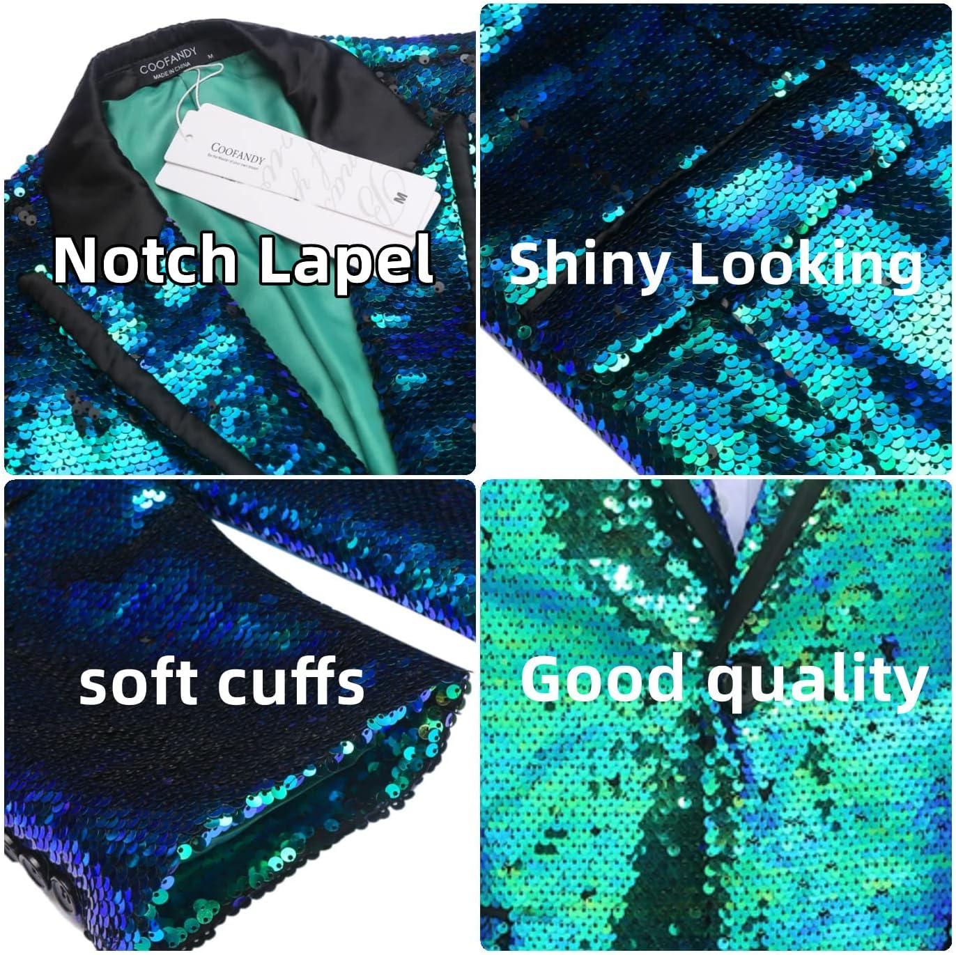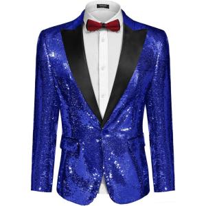 • COOFANDY Mens Sequin Blazer Tuxedo Party Prom Wedding Tuxedo One Button Jacket(Blue)