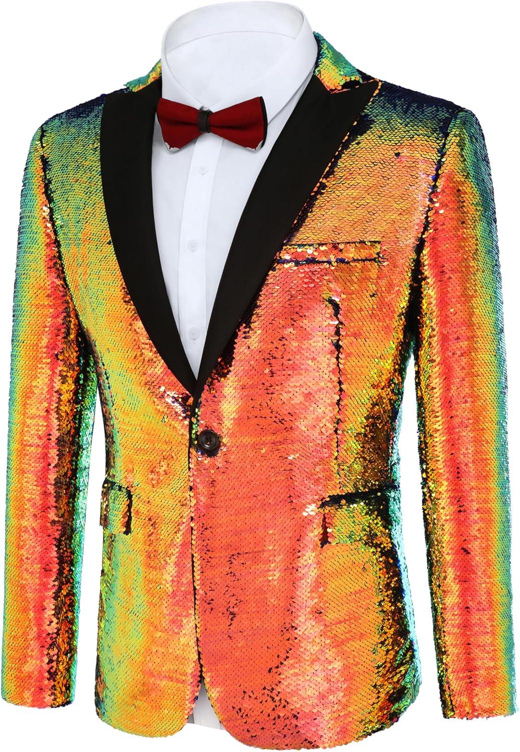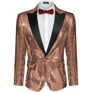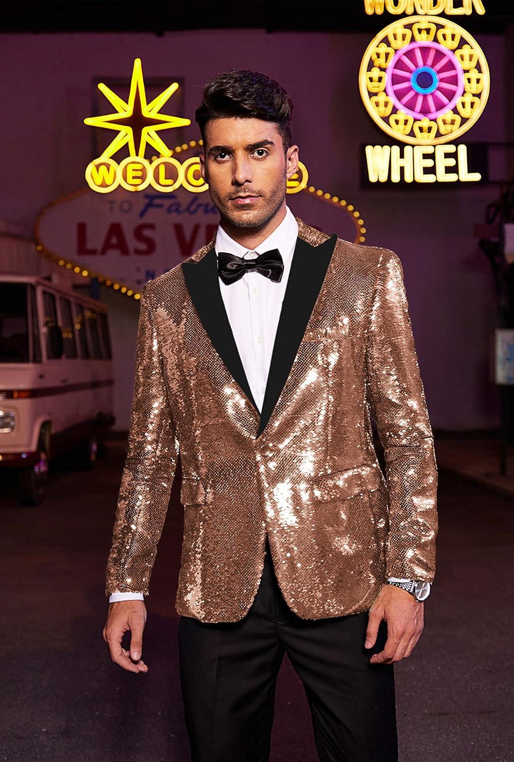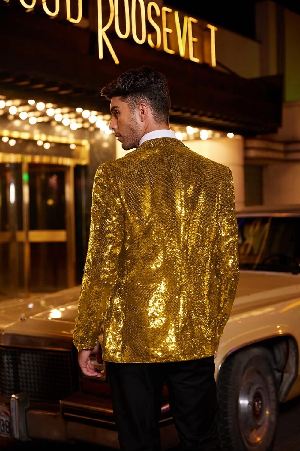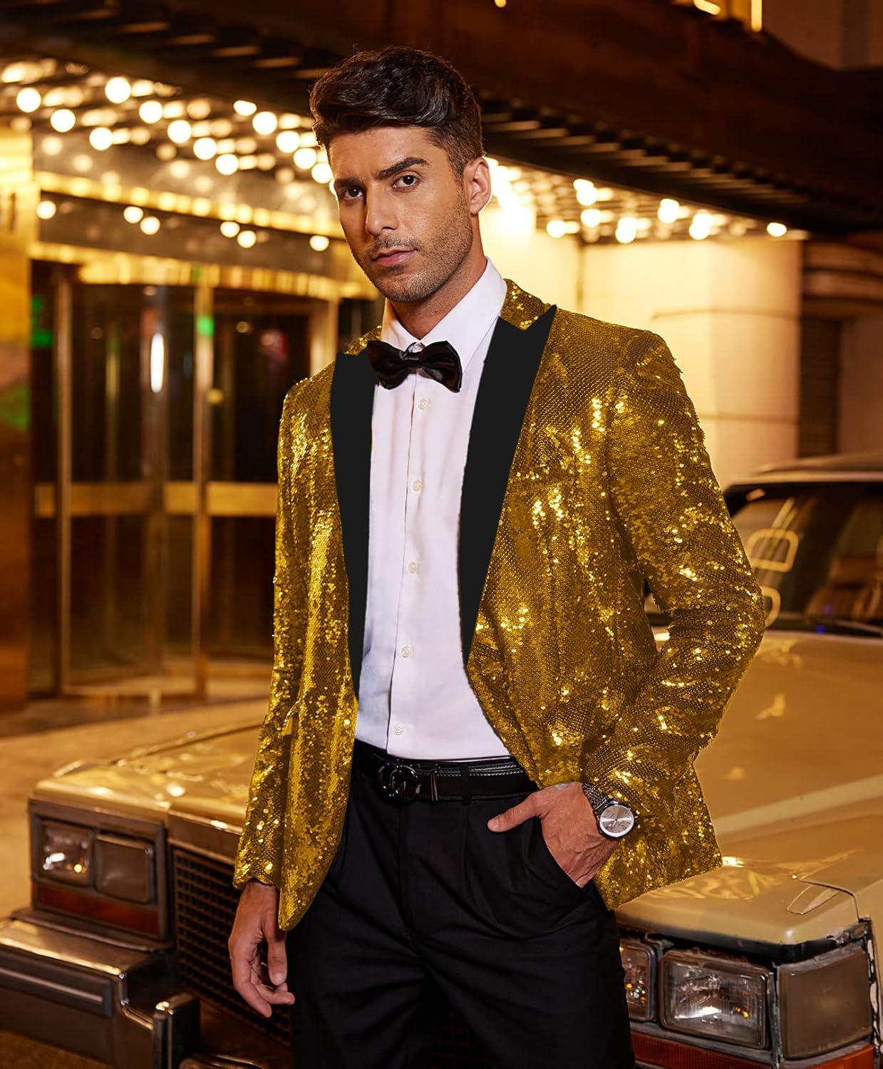 • COOFANDY Mens Sequin Blazer Tuxedo Party Prom Wedding Tuxedo One Button Jacket(Bright Gold)