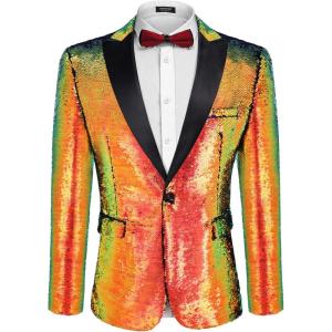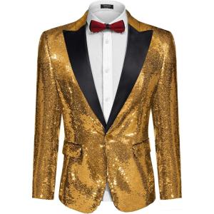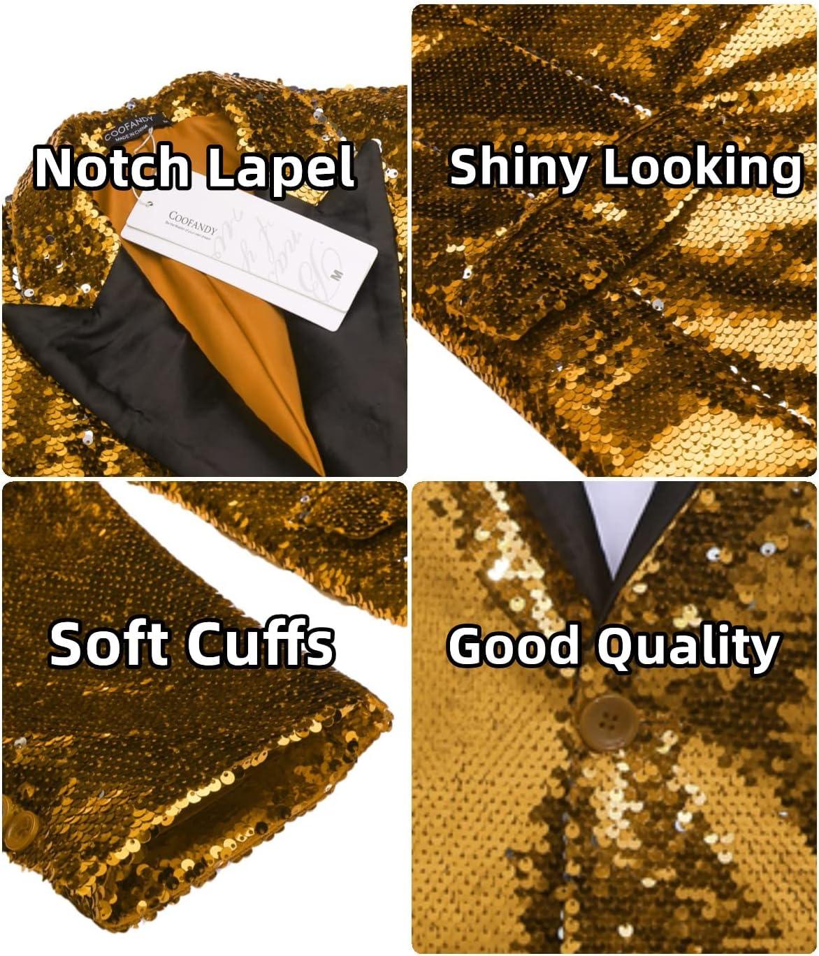 • COOFANDY Mens Sequin Blazer Tuxedo Party Prom Wedding Tuxedo One Button Jacket(Golden Yellow)