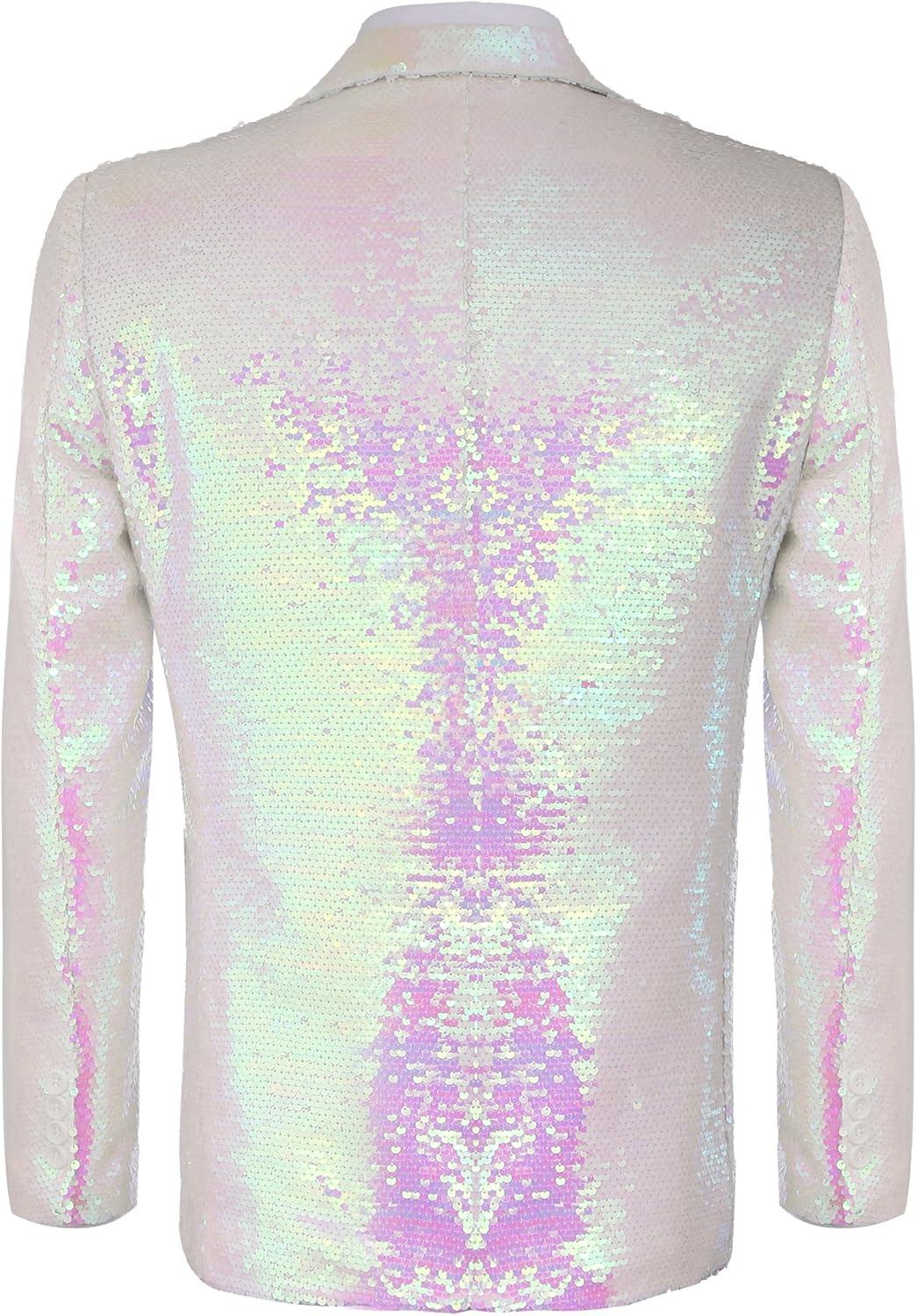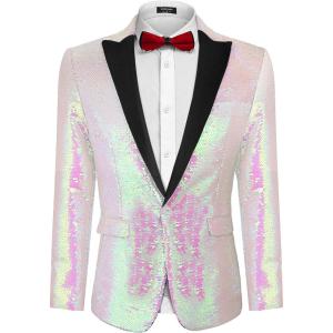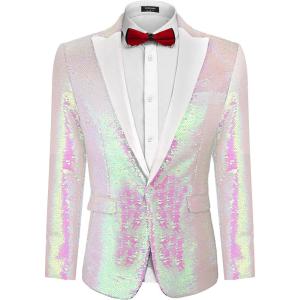 • COOFANDY Mens Sequin Blazer Tuxedo Party Prom Wedding Tuxedo One Button Jacket(Pink-white)