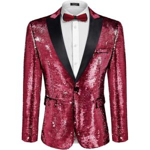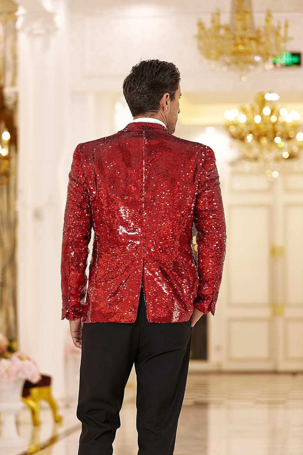 • COOFANDY Mens Sequin Blazer Tuxedo Party Prom Wedding Tuxedo One Button Jacket(Pink)