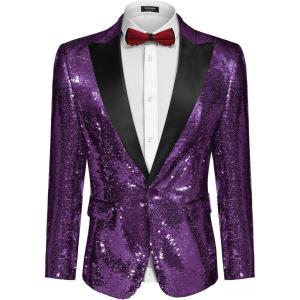 COOFANDY Mens Sequin Blazer Tuxedo Party Prom Wedding Tuxedo One Button Jacket(Purple)